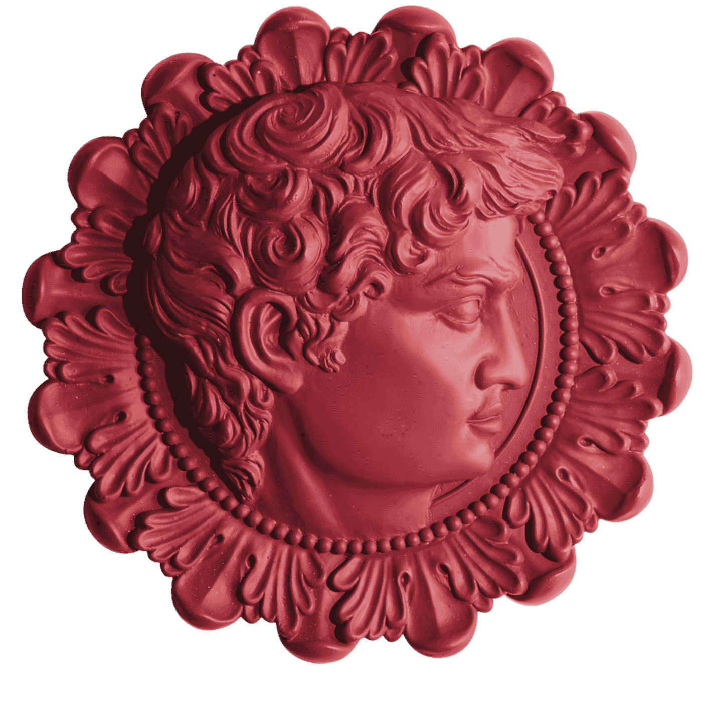 Viso David in resina amaranto, da parete. Versione in bassorilievo dell’iconico volto rinascimentale, in un colore audace e contemporaneo. Ideale per decorazioni artistiche d’impatto e ambienti creativi.