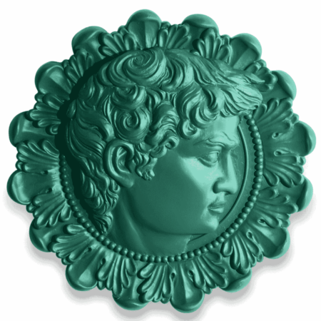 David color petrolio in resina, bassorilievo artistico da parete. Un classico rivisitato con tonalità intense, perfetto per ambienti dallo stile deciso e contemporaneo. Ideale per dare personalità alle pareti.