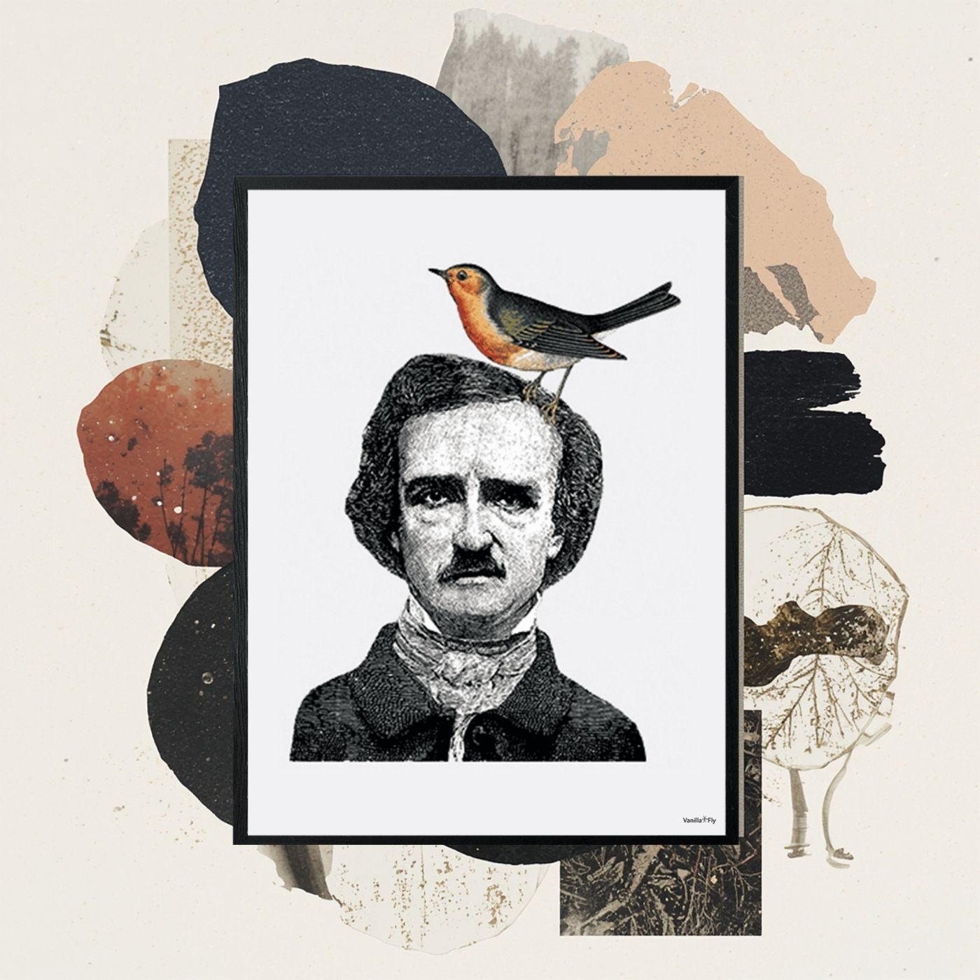 Poster artistico 30×40 “Man with Bird” incorniciato con vetro antipolvere. Una stampa surreale e raffinata per chi ama il design concettuale. Ideale per arredare pareti con uno stile eclettico e intellettuale. Perfetto per salotti, studi o camere creative.