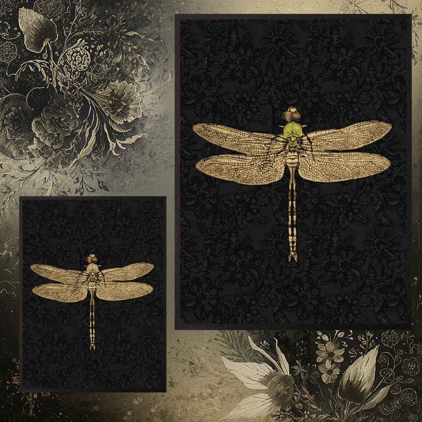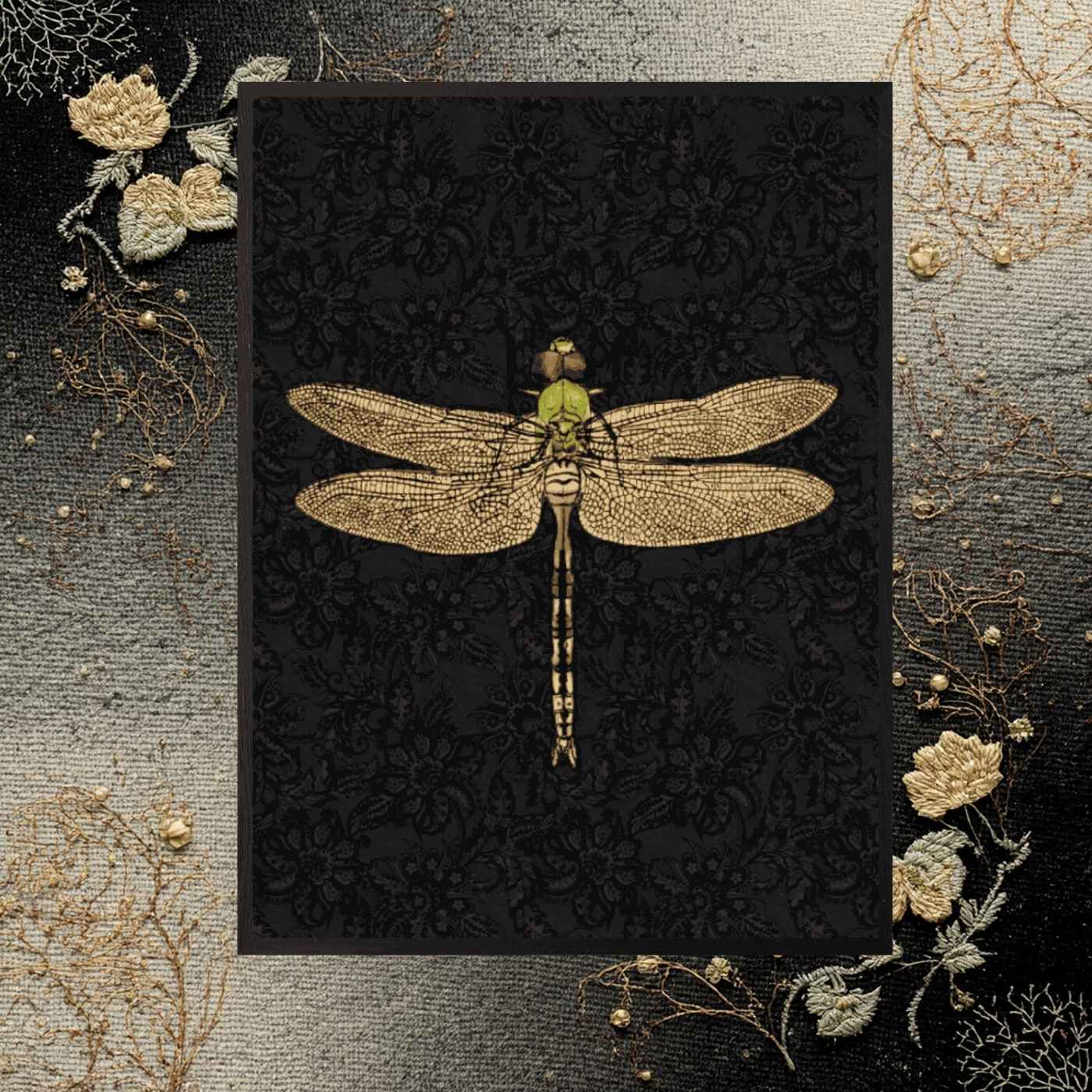 Stampa 30×40 “Dragonfly Black” su carta artistica. Cornice in legno nero e vetro antipolvere. Una libellula scura, elegante, perfetta per interni moderni o come parte di una gallery botanica.