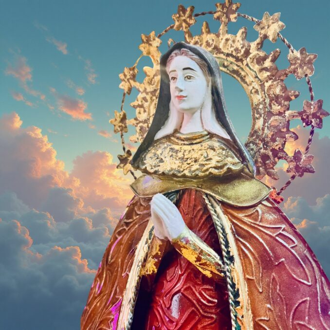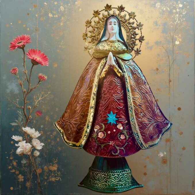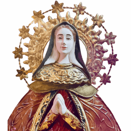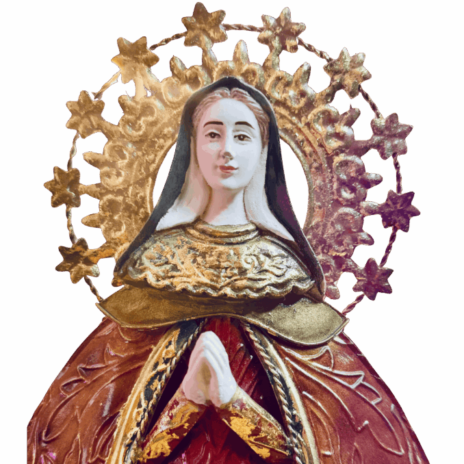 Ideale come decorazione elegante e simbolica, si adatta perfettamente a nicchie, librerie, angoli di preghiera o pareti dedicate, arricchendo l’ambiente con un tocco di arte sacra autentica. Perfetta anche come idea regalo dal forte valore spirituale.