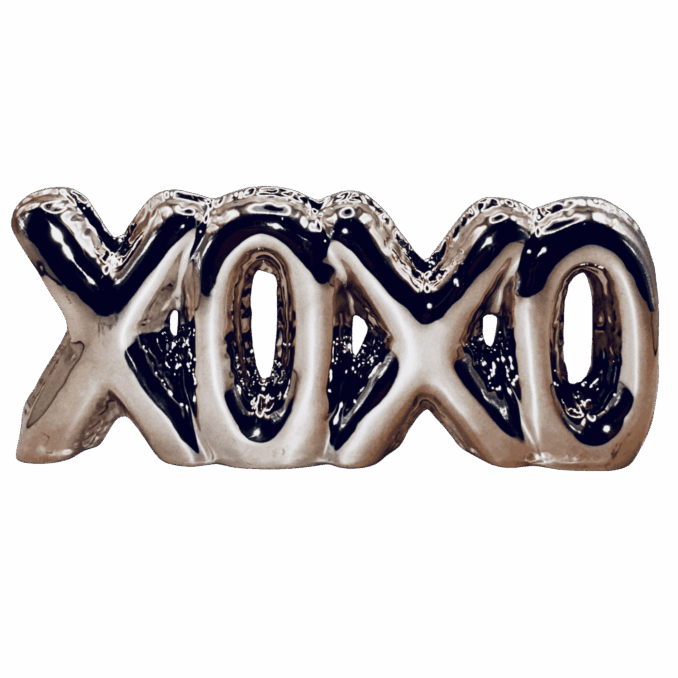 Scritta XOXO (baci e abbracci) in porcellana color oro rosa con dimensioni 22 x 9 cm. Un regalo giovanile per far breccia al cuore della persona cara.