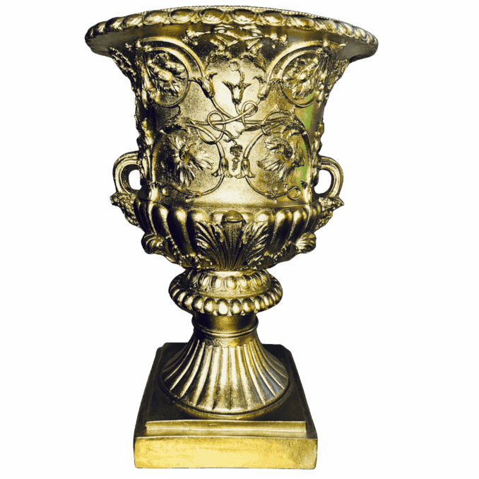Vaso in resina oro stile neo pop, alto 46 cm. Un elemento d’arredo che cattura la luce e l’attenzione, ideale per interni contemporanei, gallerie o boutique hotel.