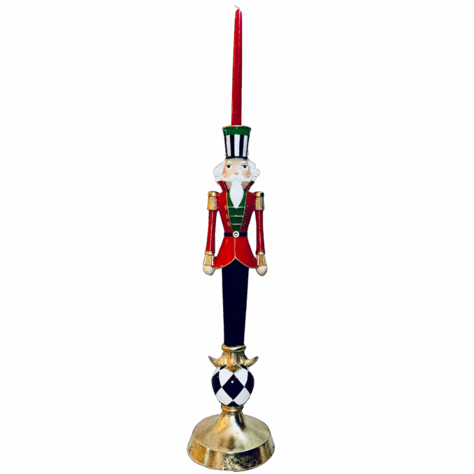 Alto 60 cm, questo raffinato elemento d’arredo unisce la tradizione dello Schiaccianoci al fascino luminoso del candelabro, diventando il protagonista perfetto delle tue decorazioni natalizie.
