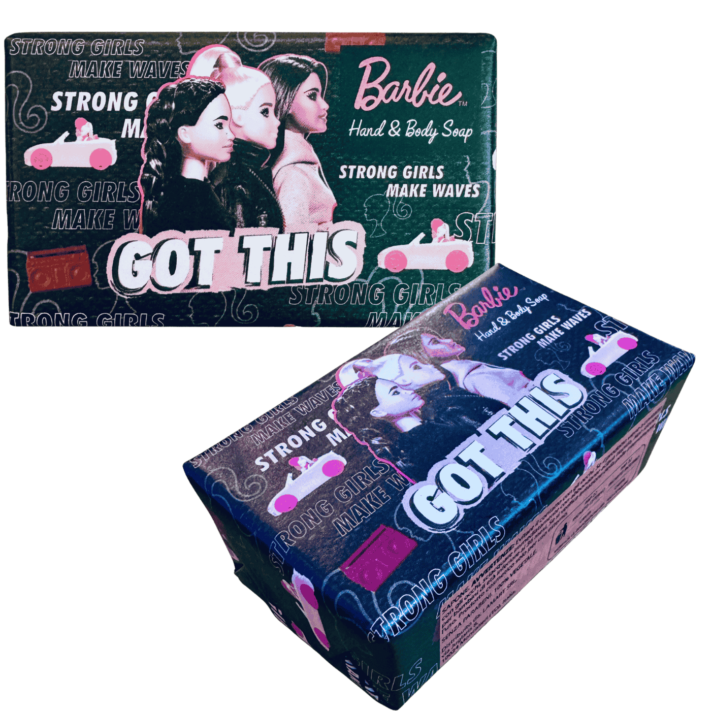 La saponetta Barbie “GOT THIS” da 190 g è un piccolo concentrato di energia, stile e femminilità. Con il suo design vivace e accattivante, ispirato al mondo Barbie, trasmette un messaggio di forza e sicurezza, pensato per chi ama prendersi cura di sé con un tocco di personalità.