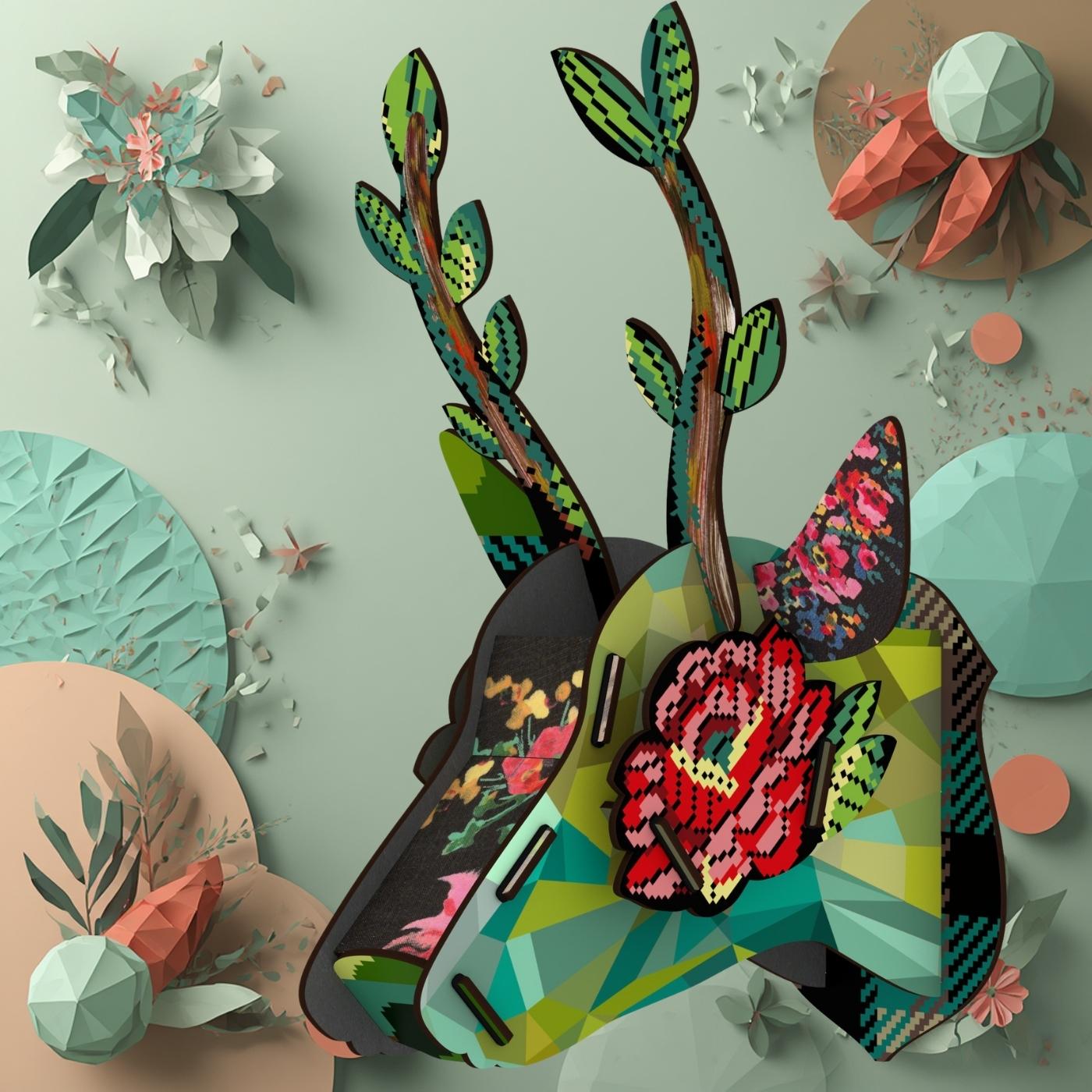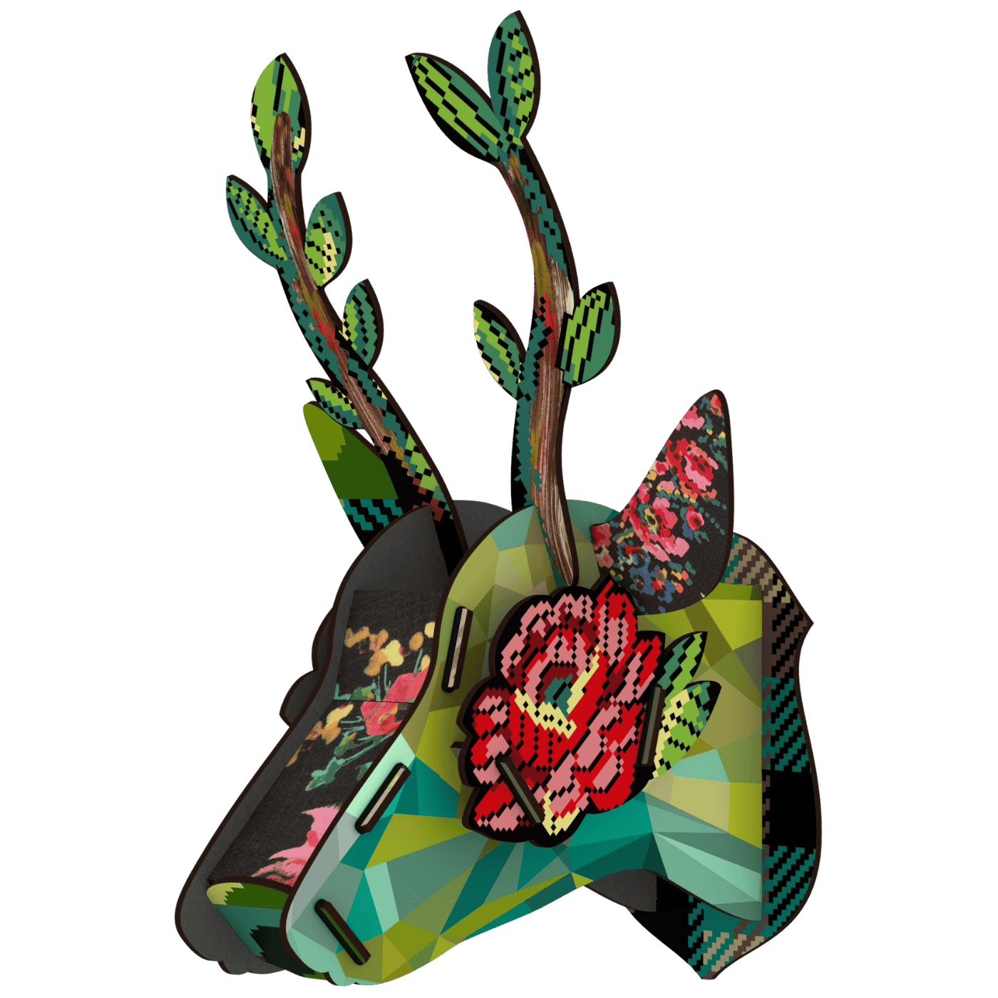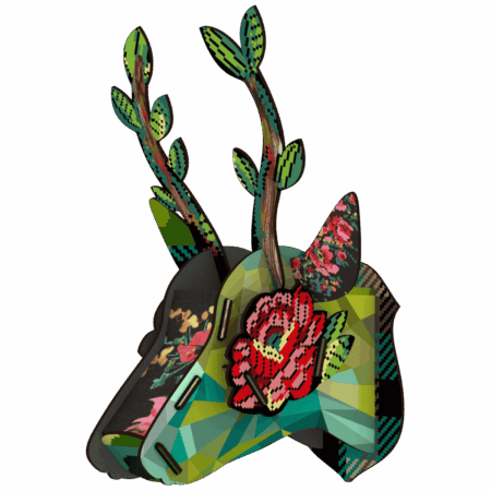 Capriolo piccolo “Funhouse”, decorazione murale in cartone ecologico. Un oggetto unico che mixa ironia e sostenibilità. Perfetto per dare un tocco pop a camerette, studi creativi o ingressi.