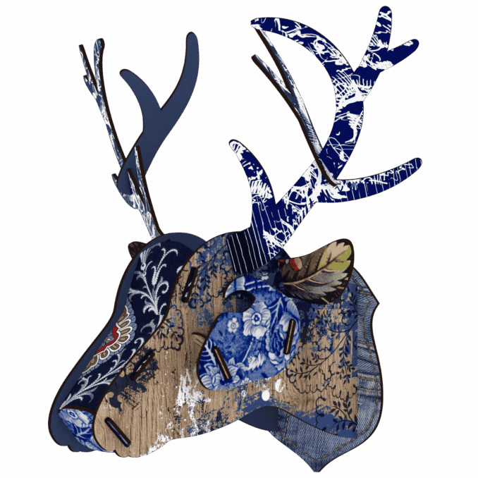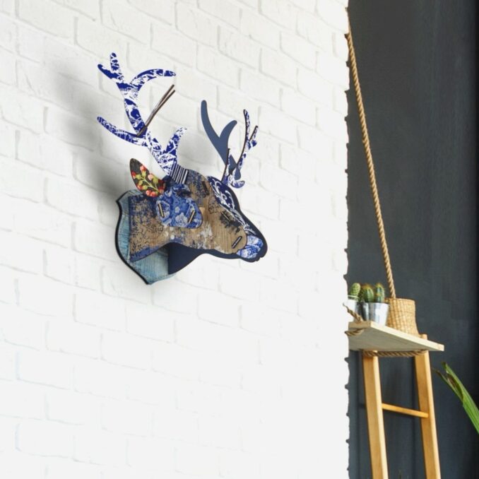 Cervo medio “Breaking News”, in cartone riciclato. Una decorazione murale che aggiunge colore, personalità e un tocco ironico all’ambiente. Ideale per interni pop e creativi.