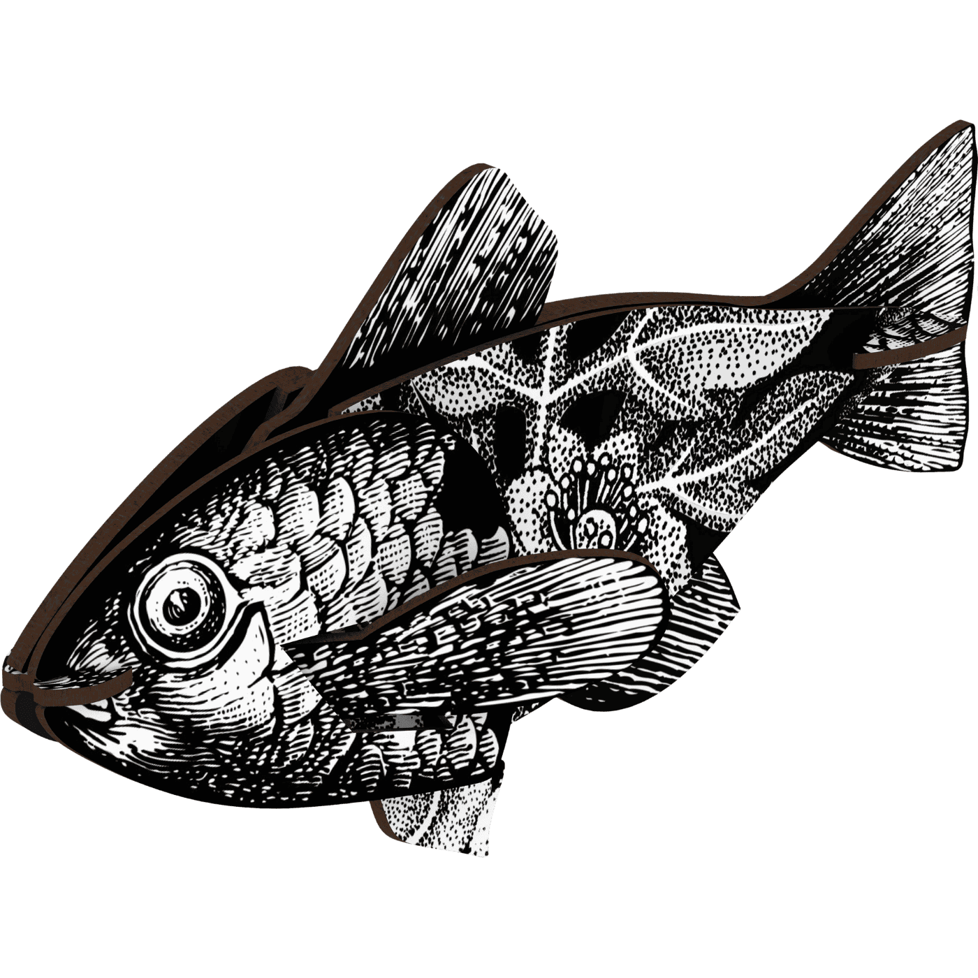 Pesce décor “Vertigo” misura small. Design d’impatto che richiama l’arte contemporanea. Realizzato in materiali ecologici. Ideale per spazi audaci e colorati.