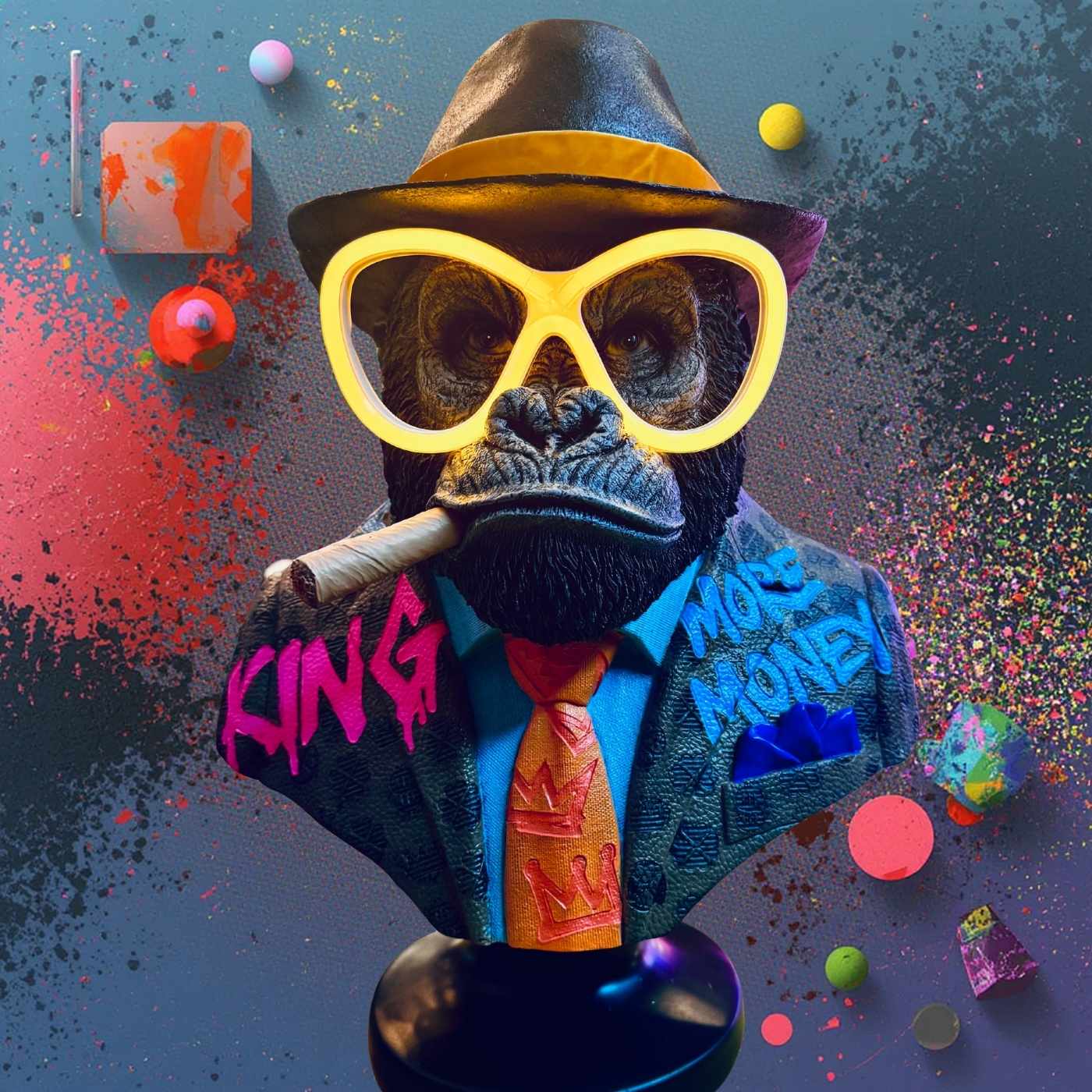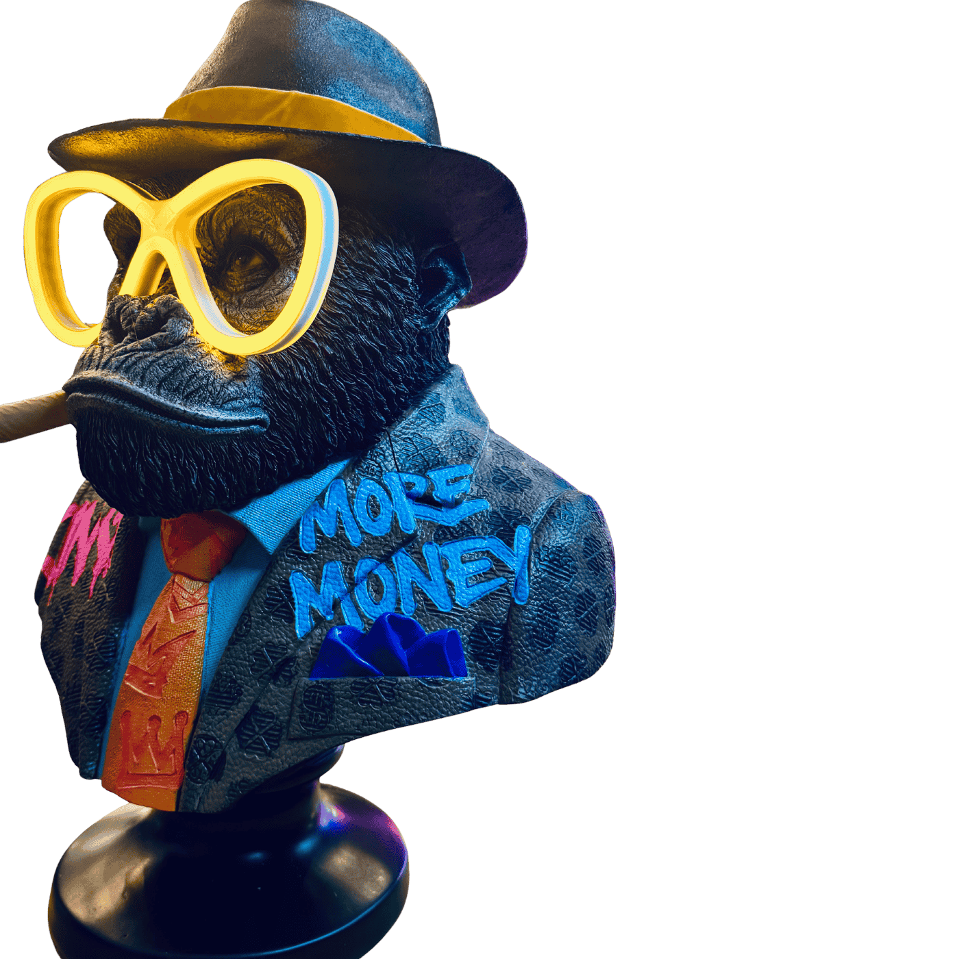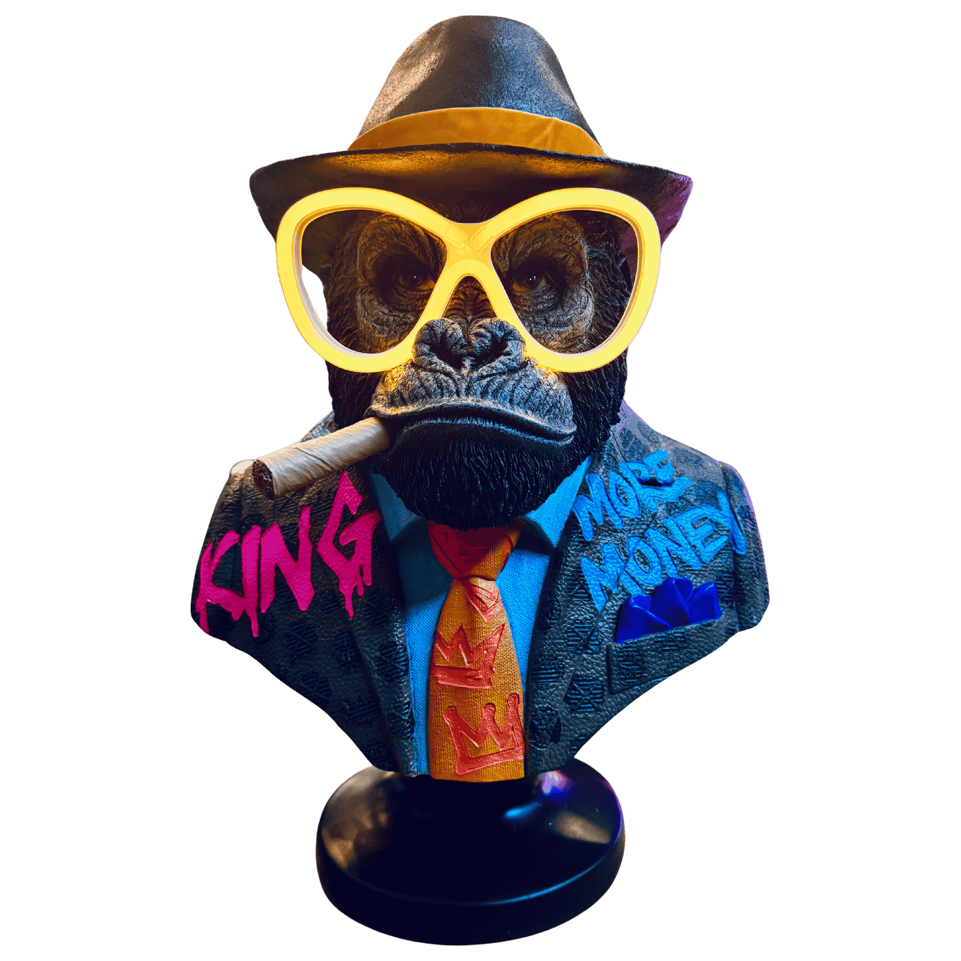 Un complemento d’arredo dal forte impatto visivo che unisce arte urbana e design contemporaneo. Il busto Gorilla Frank, alto 44 cm, è realizzato in resina di alta qualità, con lavorazione accurata che valorizza ogni dettaglio dell’espressione e delle forme.
