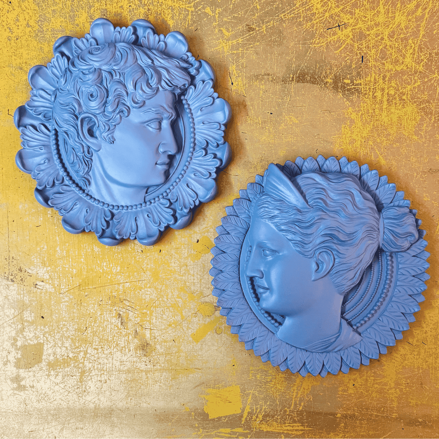 David in bassorilievo da parete, resina color carta da zucchero. Un tocco pop per decorare la casa con eleganza classica e tono cromatico delicato. Perfetto in ambienti eclettici o minimal.