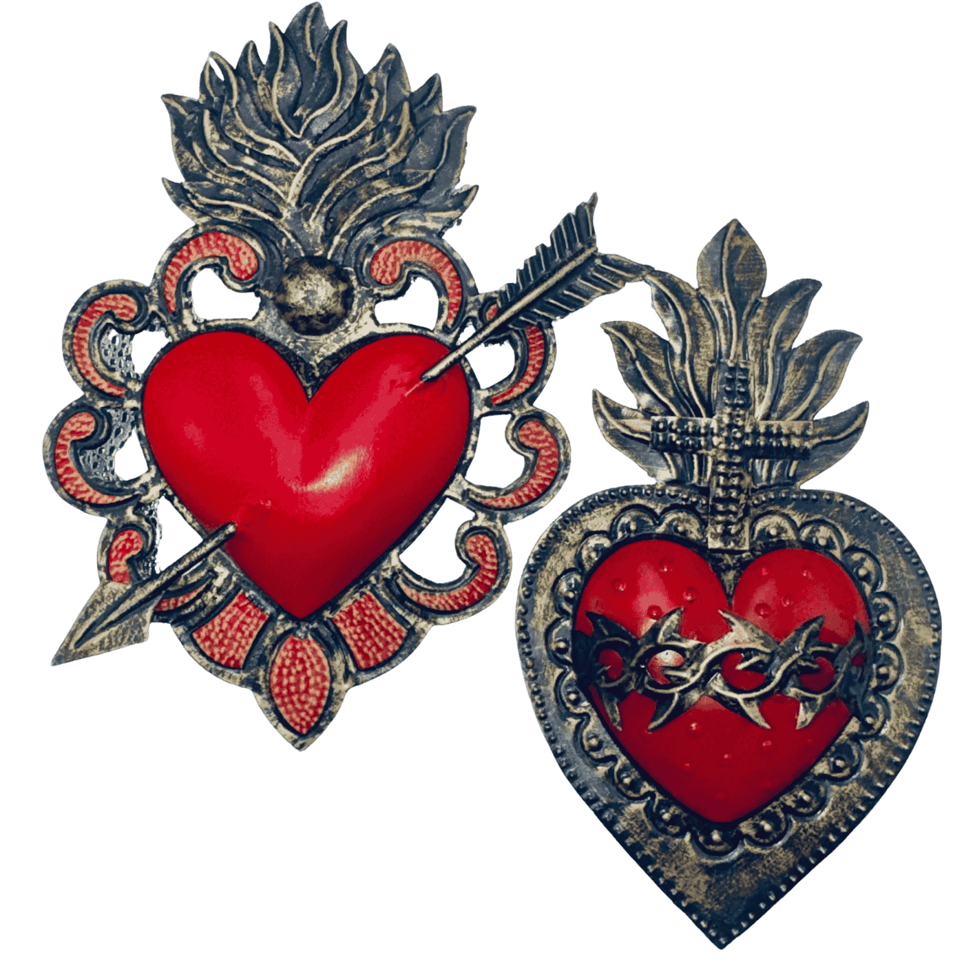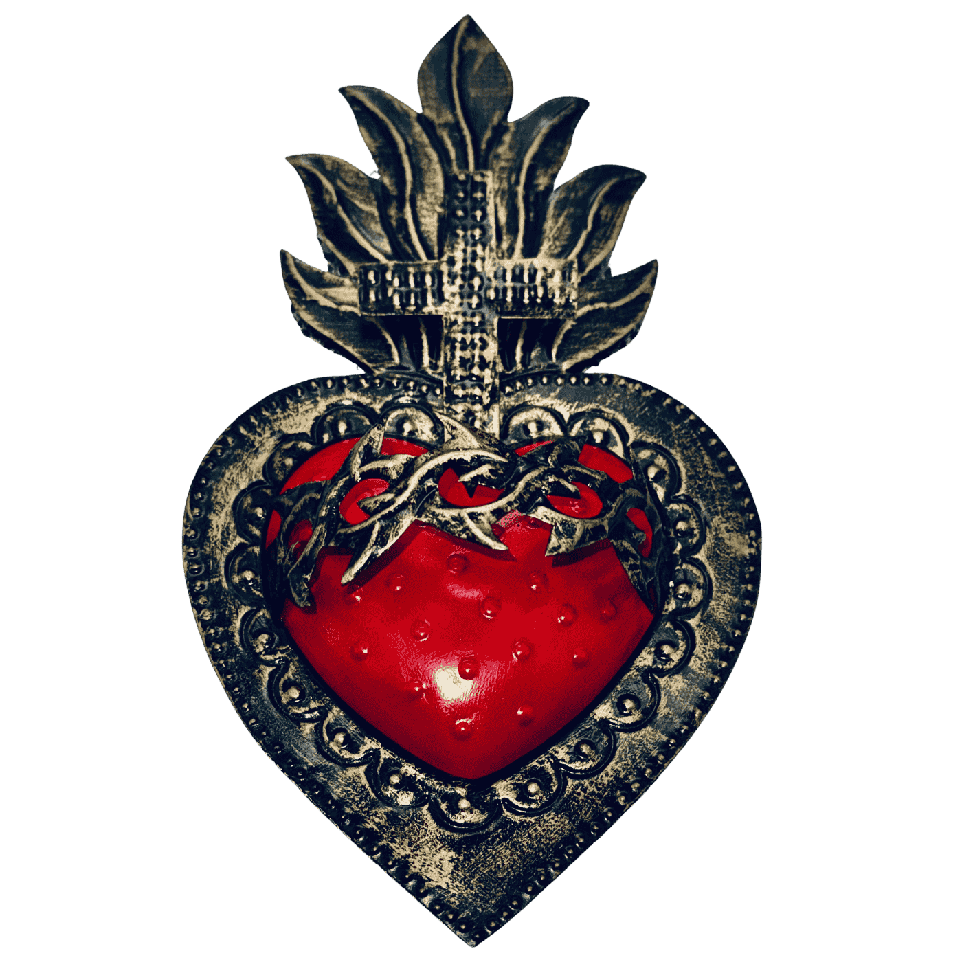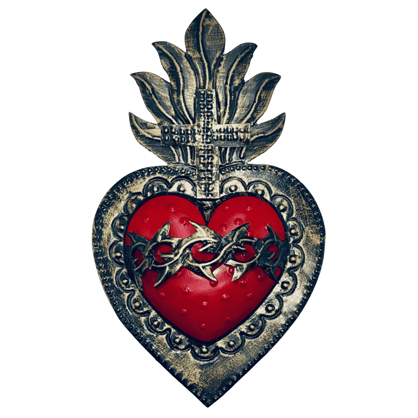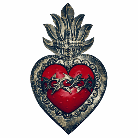 Cuore con Croce e Corona di Spine, realizzato in latta e decorato a freddo con colori acrilici.
