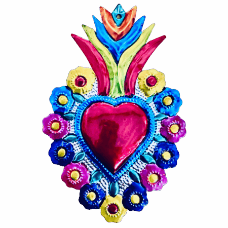 I cuori colorati in latta messicani, sono elementi decorativi artigianali tipici della tradizione popolare del Messico, noti per il loro forte valore simbolico e per l’estetica vivace e suggestiva.