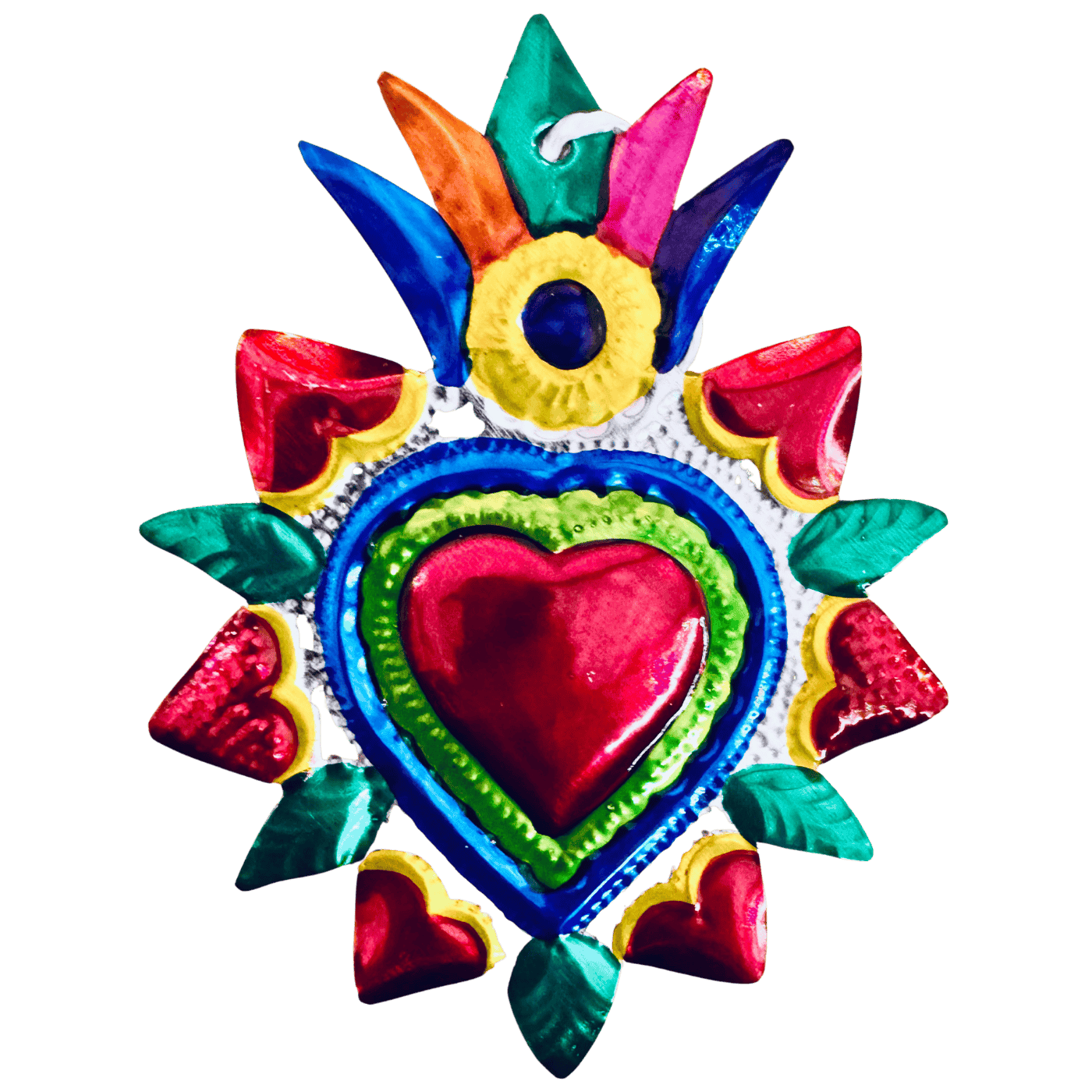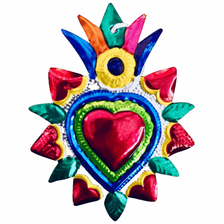 I cuori colorati in latta messicani, sono elementi decorativi artigianali tipici della tradizione popolare del Messico, noti per il loro forte valore simbolico e per l’estetica vivace e suggestiva.