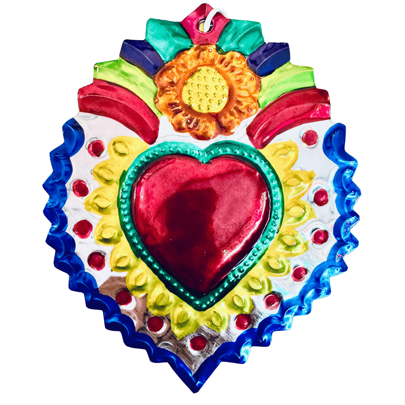 I cuori colorati in latta messicani, sono elementi decorativi artigianali tipici della tradizione popolare del Messico, noti per il loro forte valore simbolico e per l’estetica vivace e suggestiva.