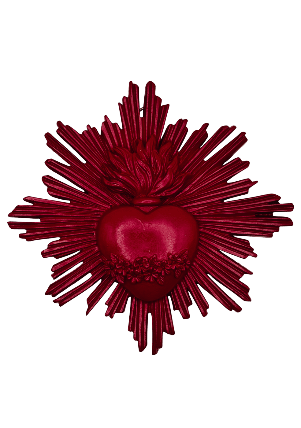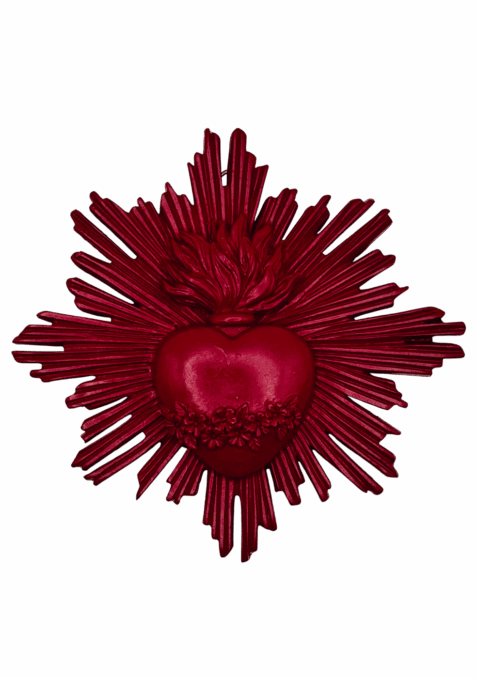 Ex-voto con raggi color amaranto in resina. Un complemento da parete che unisce spiritualità e stile pop. Perfetto per creare pareti d’effetto o per personalizzare ambienti con un simbolismo energico.