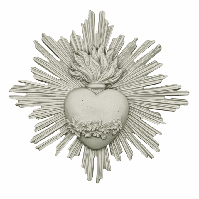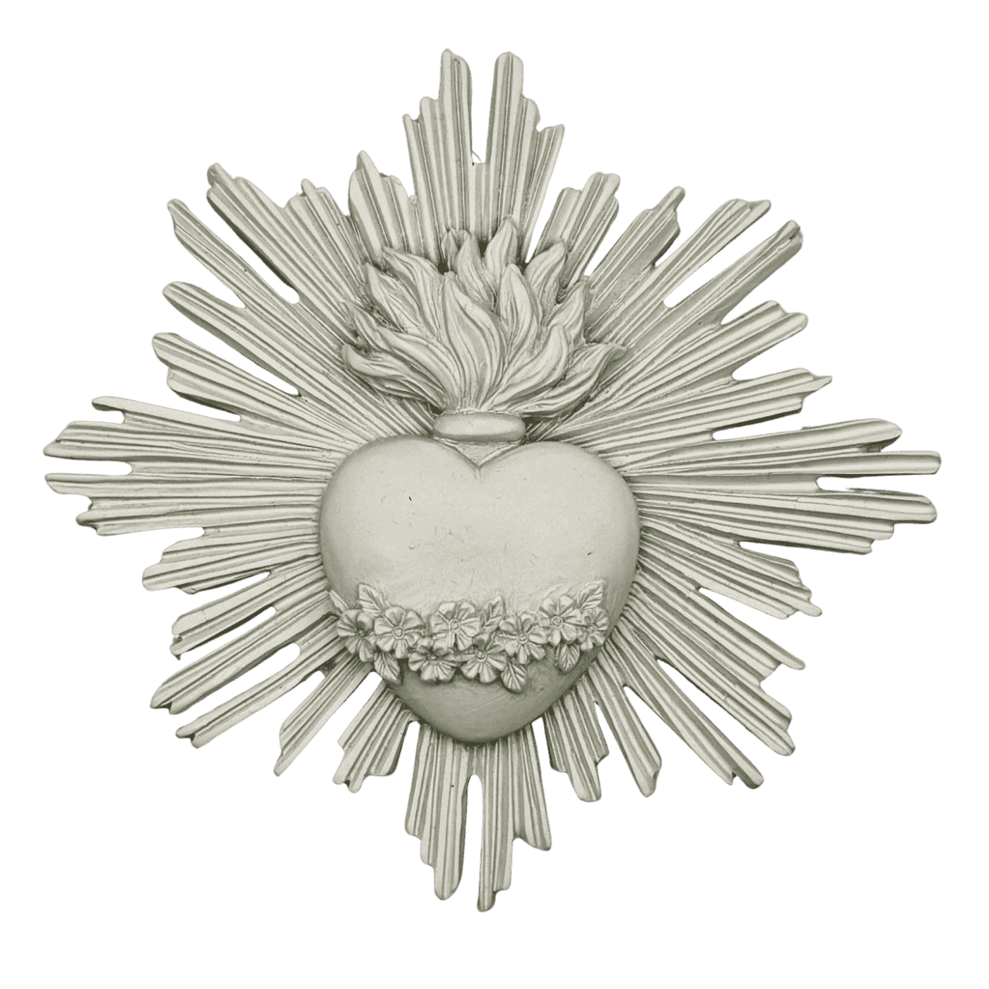 Ex-voto decorativo da parete in resina bianca, con raggi stilizzati. Ideale per ambienti luminosi e raffinati, trasmette un messaggio di protezione e spiritualità. Aggiunge un tocco artistico a qualsiasi spazio.