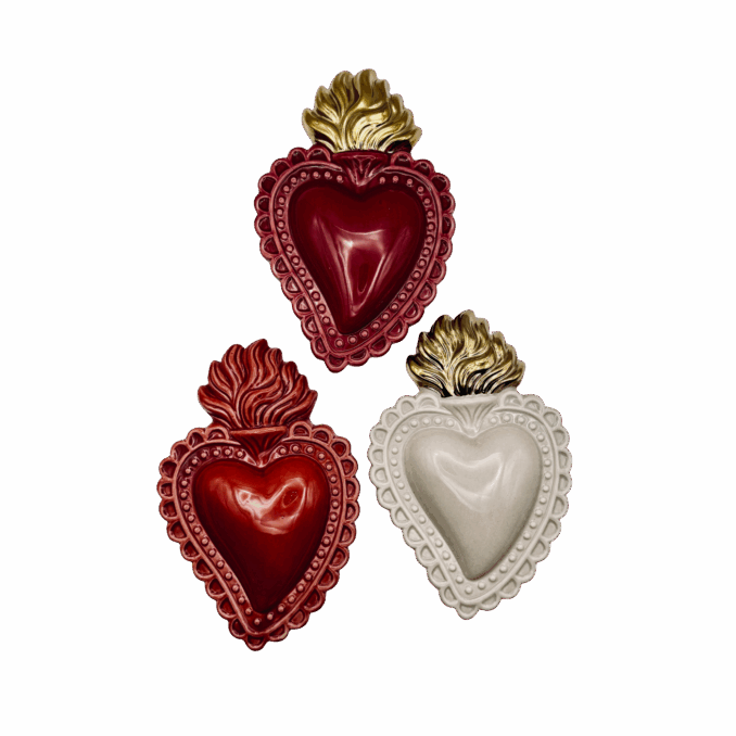 Piccolo cuore ex-voto decorativo fucsia in porcellana dipinta a mano. Un tocco di colore vibrante e simbolico, perfetto per arredare ambienti contemporanei e originali. Ottima idea regalo per occasioni speciali.
