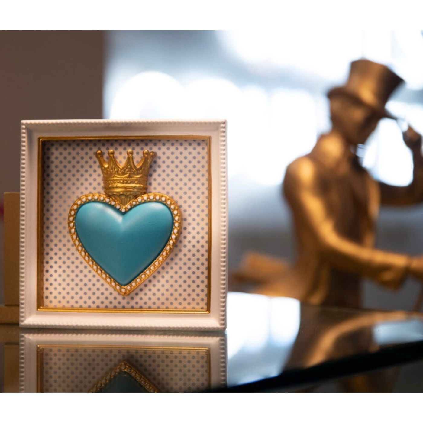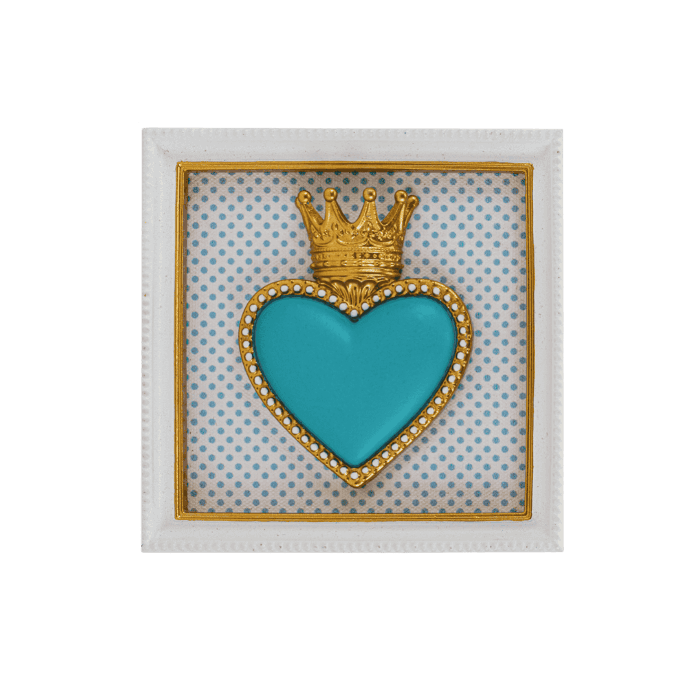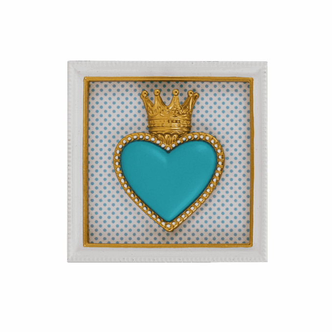 Quadretto piccolo con cuore azzurro. Oggetto decorativo da parete in resina dipinta a mano, perfetto per chi cerca un complemento simbolico e colorato per spazi raccolti o pareti creative.