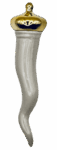 Piccolo corno decorativo in porcellana nera con dettagli oro dipinti a mano. Oggetto simbolico di buon auspicio che unisce tradizione e design moderno. Perfetto per decorare mensole e angoli della casa con un gusto elegante e contemporaneo.