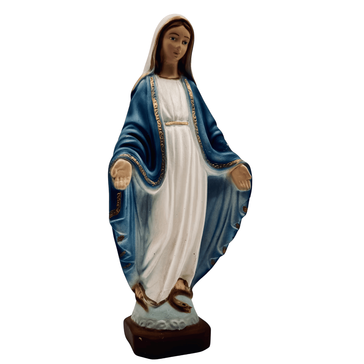 Madonna Santissima Immacolata piccola – in resina alta 23 cm, dipinta a mano. Un formato compatto che conserva tutta l’intensità spirituale dell’icona mariana.