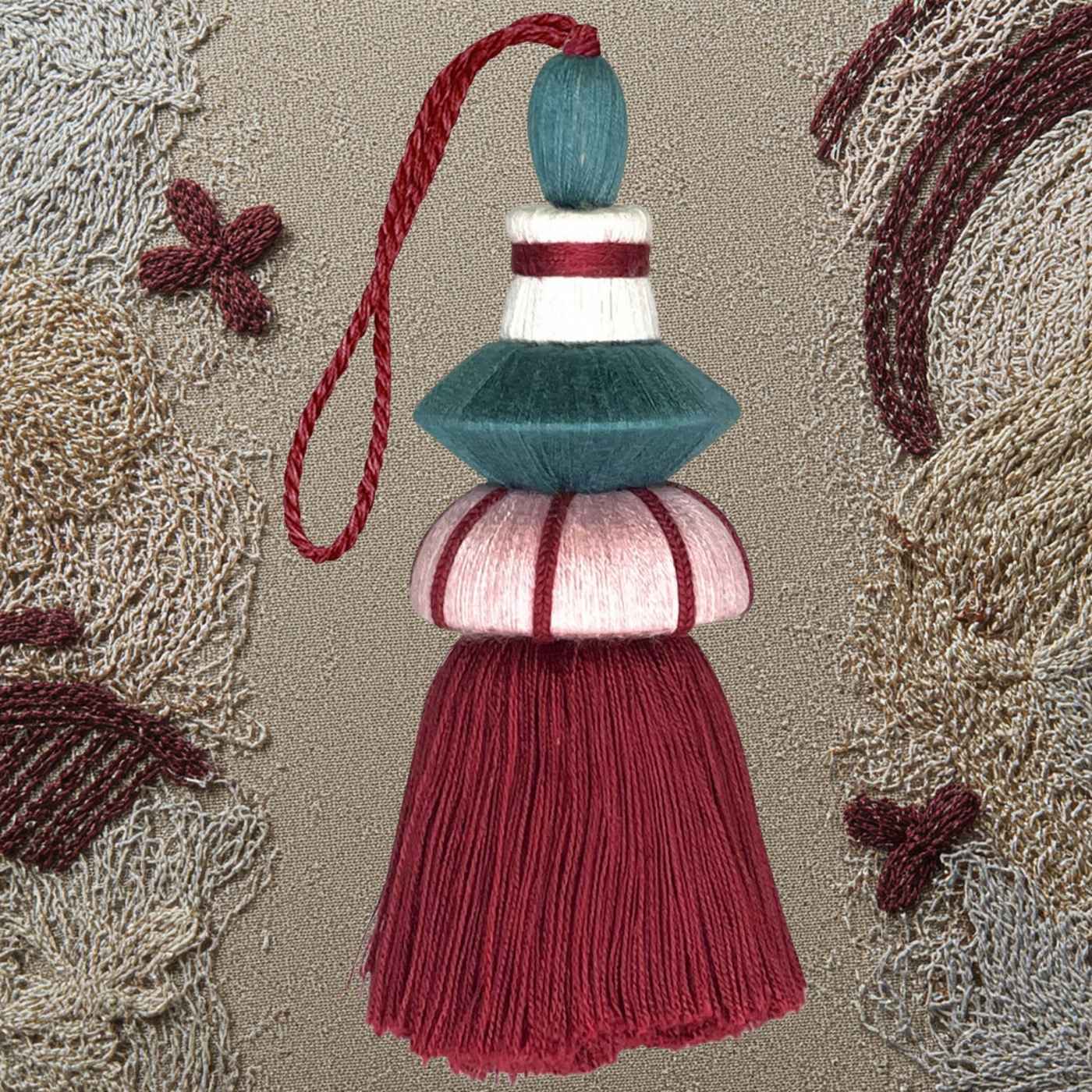 Nappina “Si” in legno e tessuto. Perfetta per completare con eleganza tendaggi, credenze o maniglie. Un classico décor che non passa mai di moda.