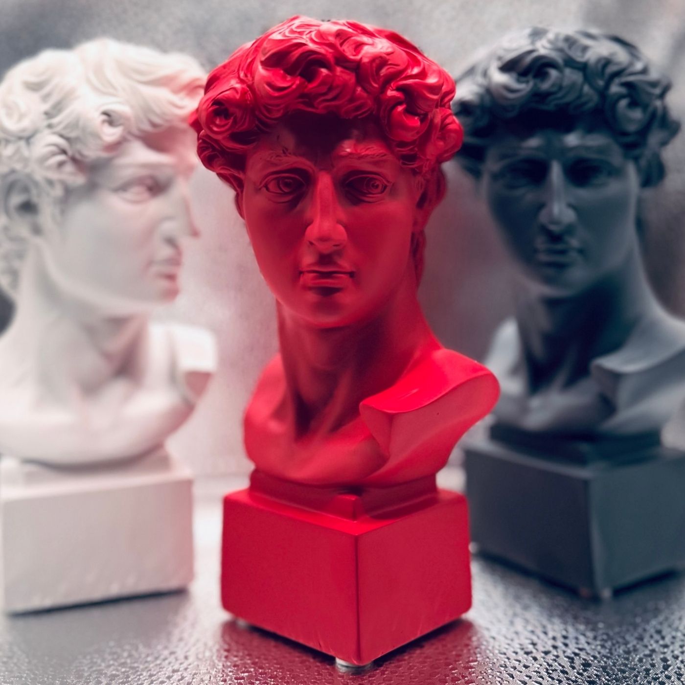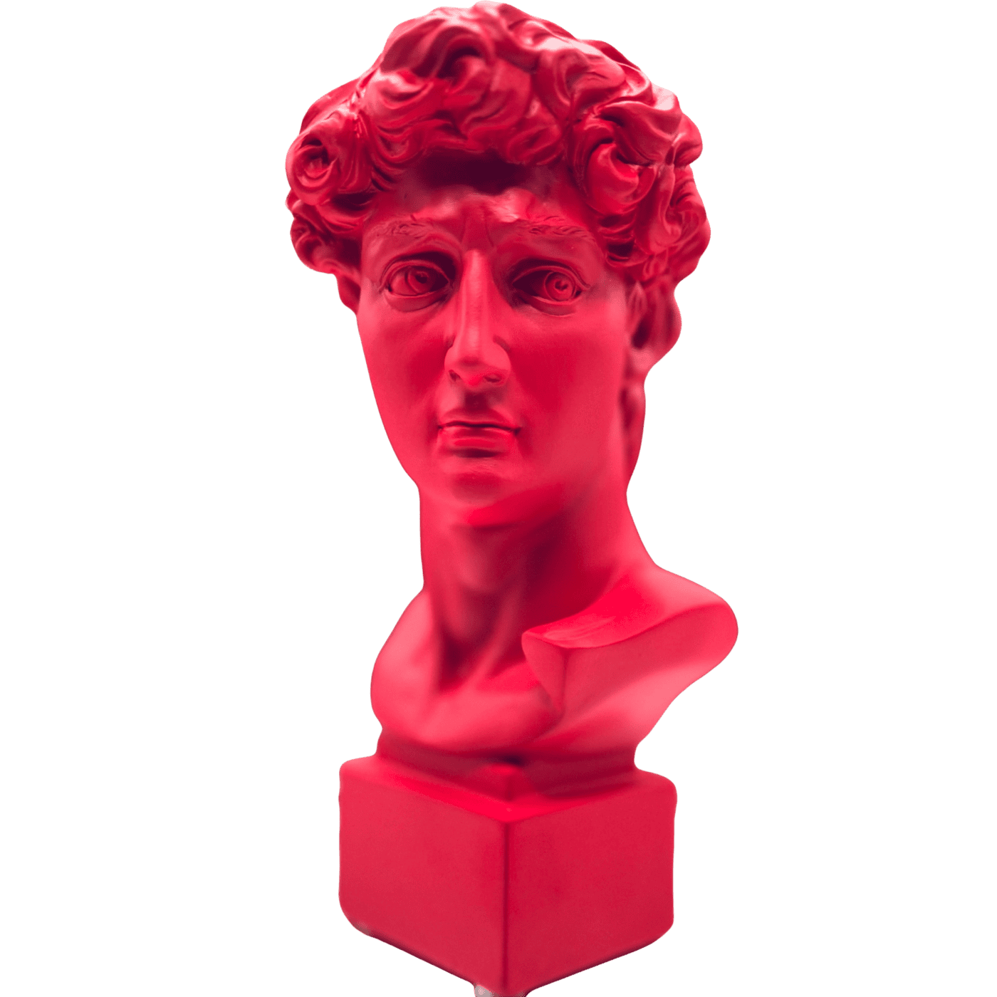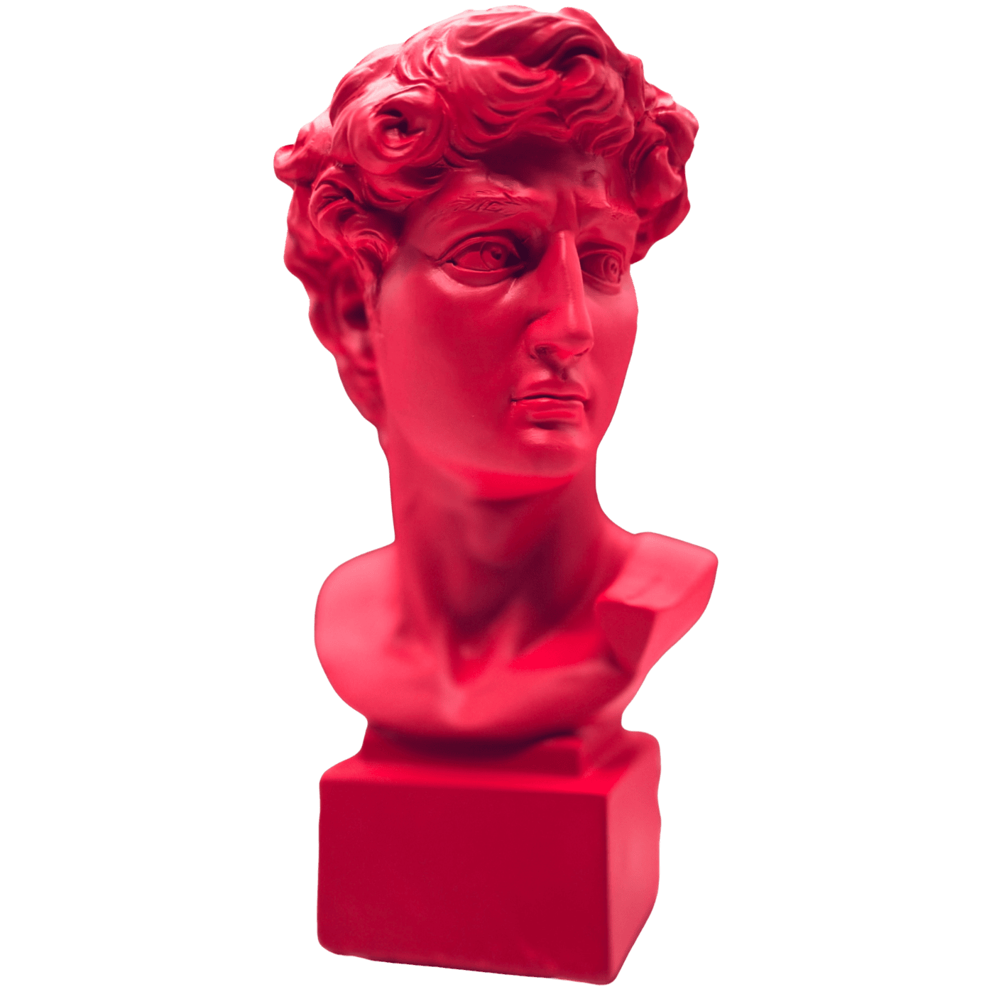 Busto del David in resina rossa, 18 cm. Una versione contemporanea e intensa del celebre soggetto classico. Aggiunge carattere e colore a ogni spazio.