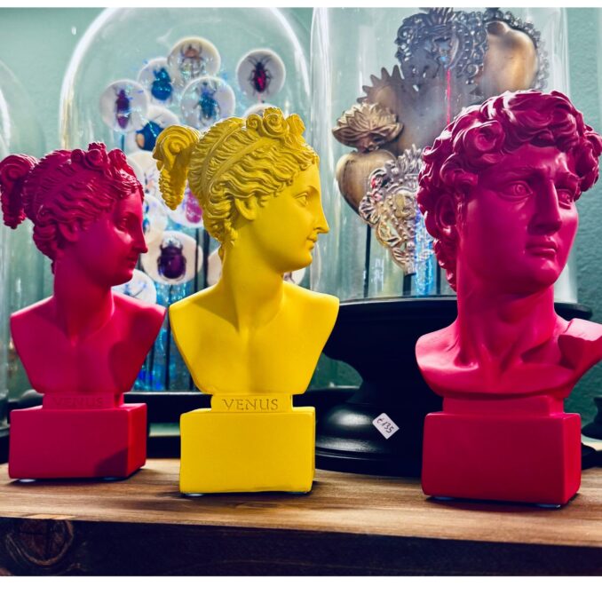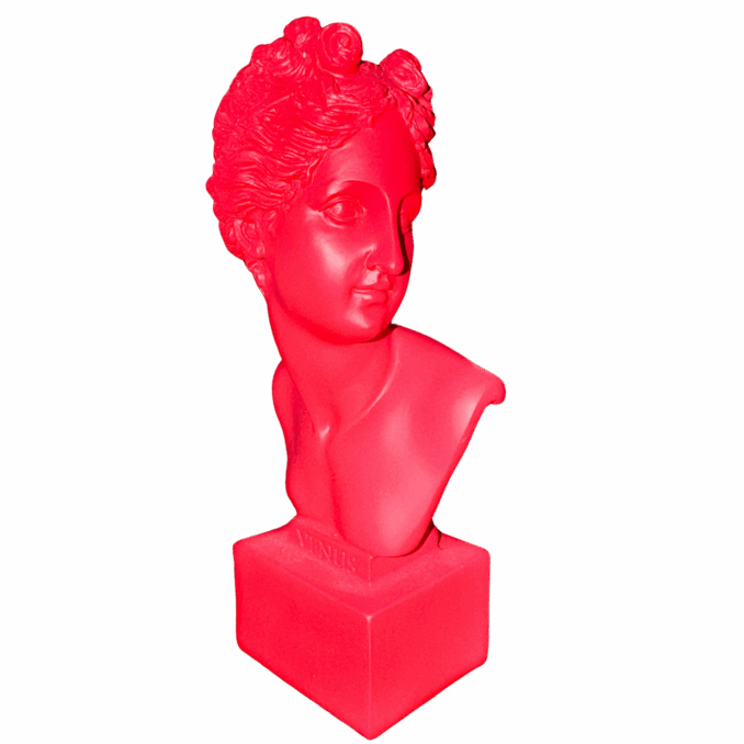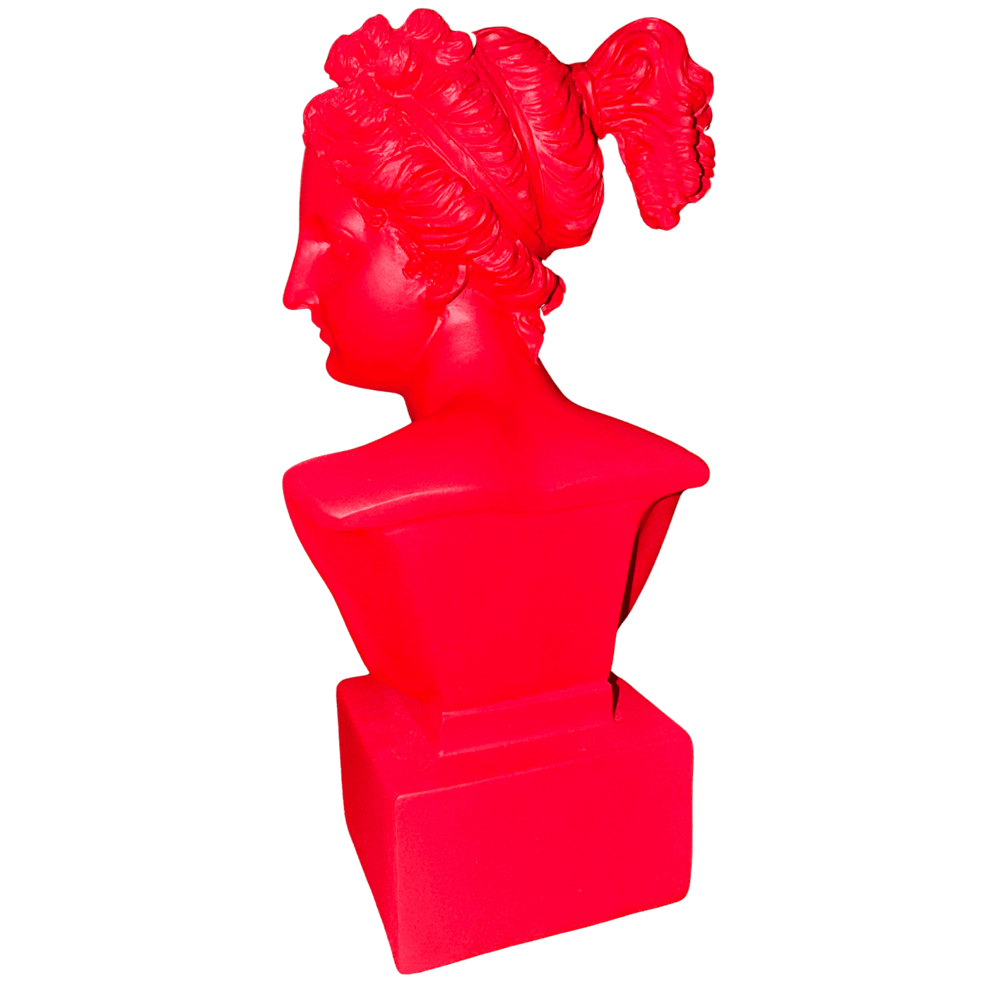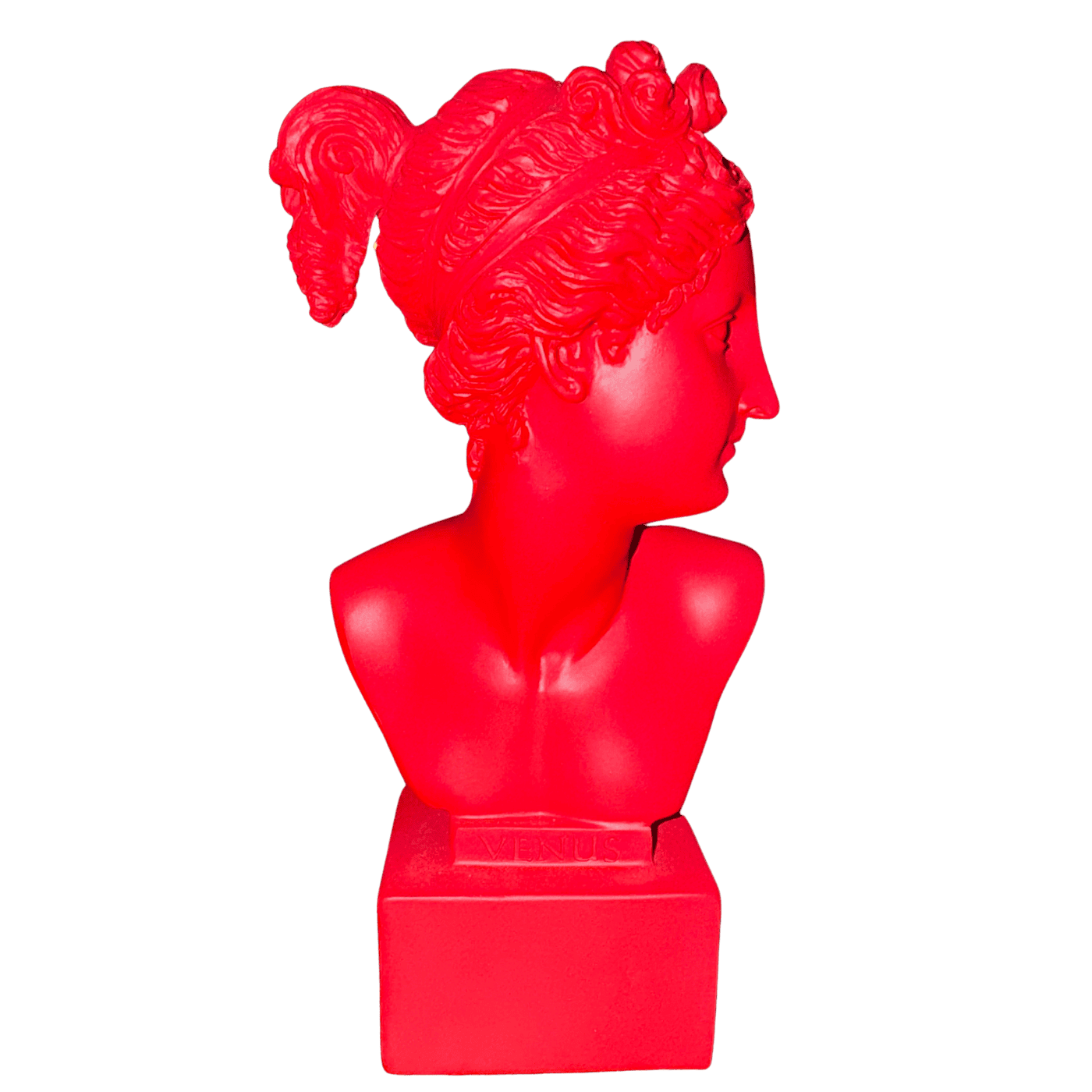 Busto di Venere in resina rossa, 19 cm. Stile raffinato e vibrante. Pezzo decorativo perfetto per spazi romantici, artistici o pop.