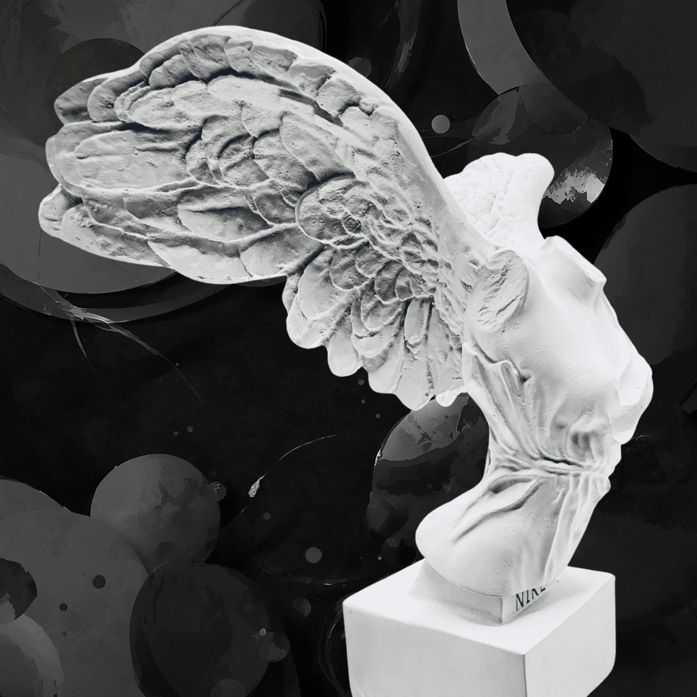 Realizzata in resina resistente e leggera, riproduce con cura i dettagli iconici della figura alata, reinterpretandoli in chiave mitologico-pop: un mix equilibrato tra classicismo e design contemporaneo. La finitura bianca esalta le forme e si abbina facilmente a diversi stili d’arredo, dal moderno al minimal fino al neoclassico.