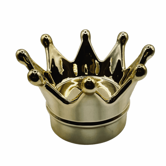 Corona decorativa in porcellana color oro, alta 10 centimetri. Elemento ironico e prezioso, è perfetto come svuotatasche o pezzo da mensola. Dona un tocco pop-luxury a ogni ambiente.