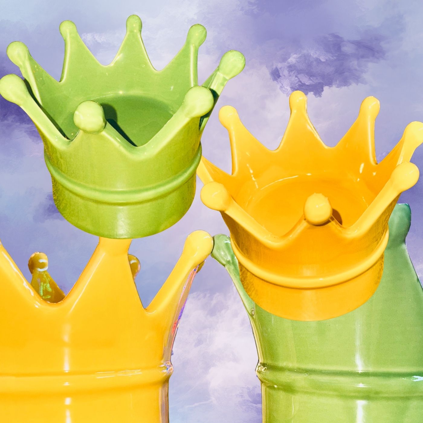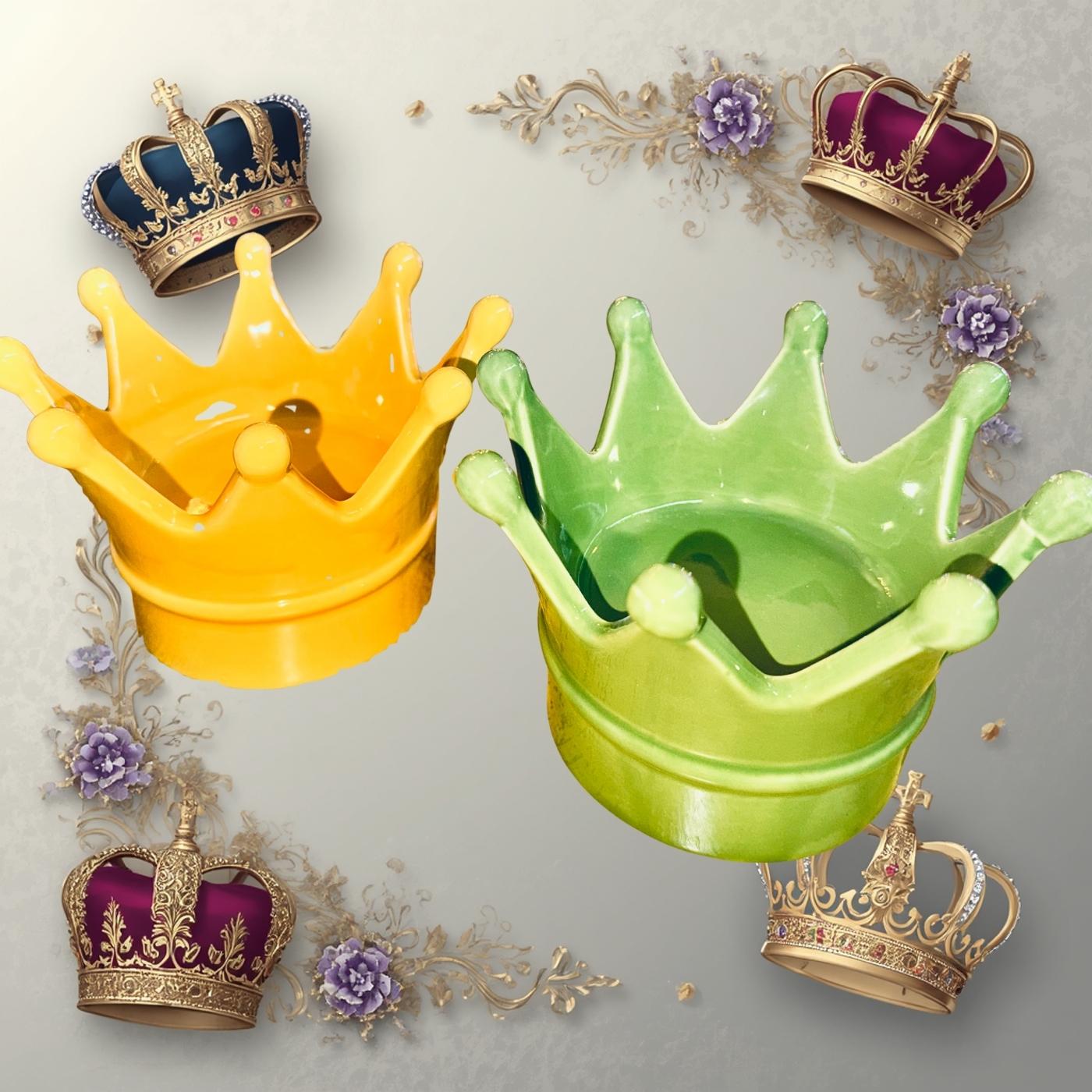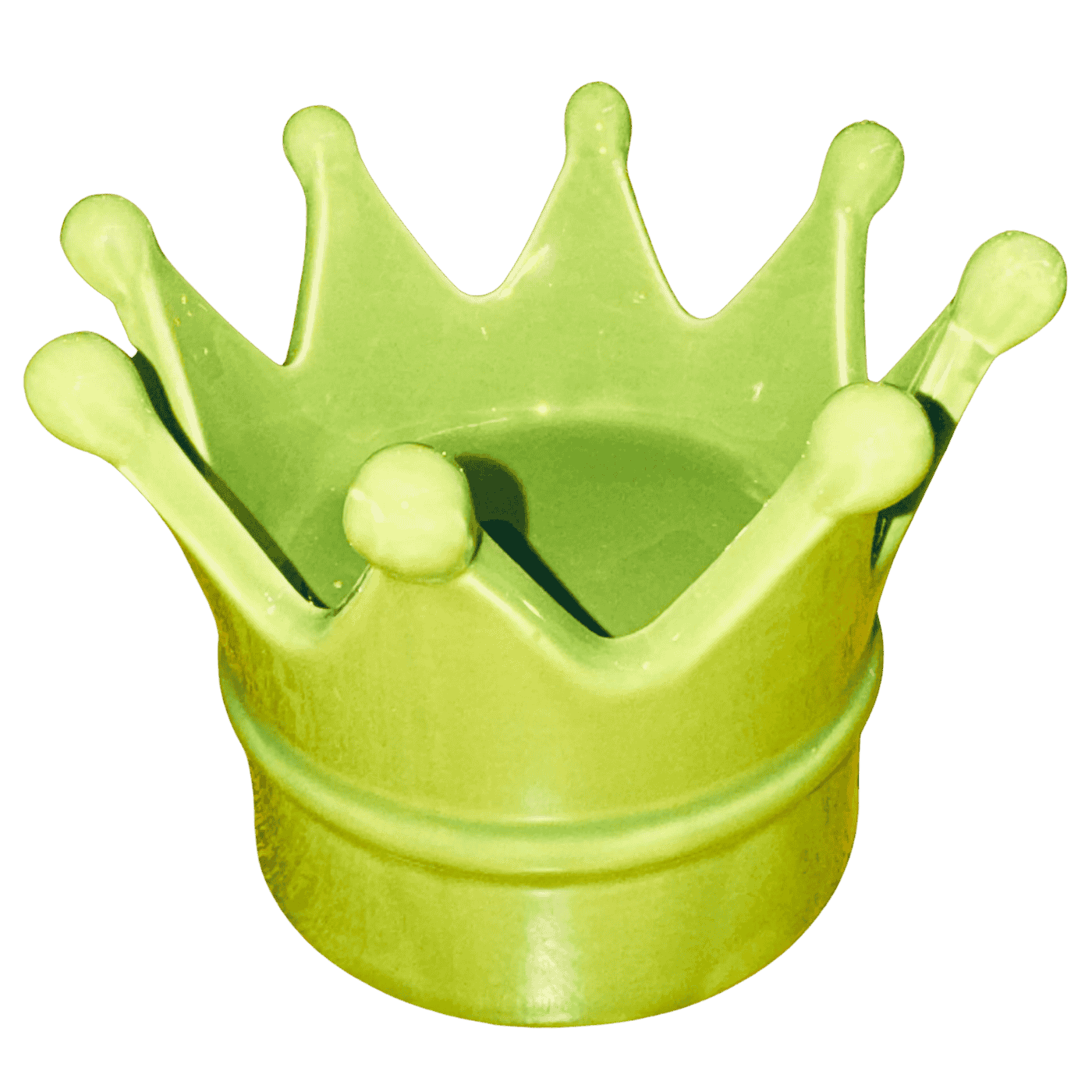 Corona decorativa in porcellana color verde, alta 10 centimetri. Può essere usata come svuotatasche o come oggetto da appoggio. Un simbolo ironico e regale per ambienti creativi e contemporanei.