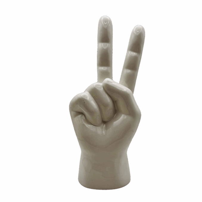 Scultura decorativa mano “Vittoria” in ceramica bianca. Un oggetto di design minimal e simbolico che aggiunge un tocco moderno e raffinato all’arredo. Perfetta per ambienti contemporanei o come idea regalo originale.
