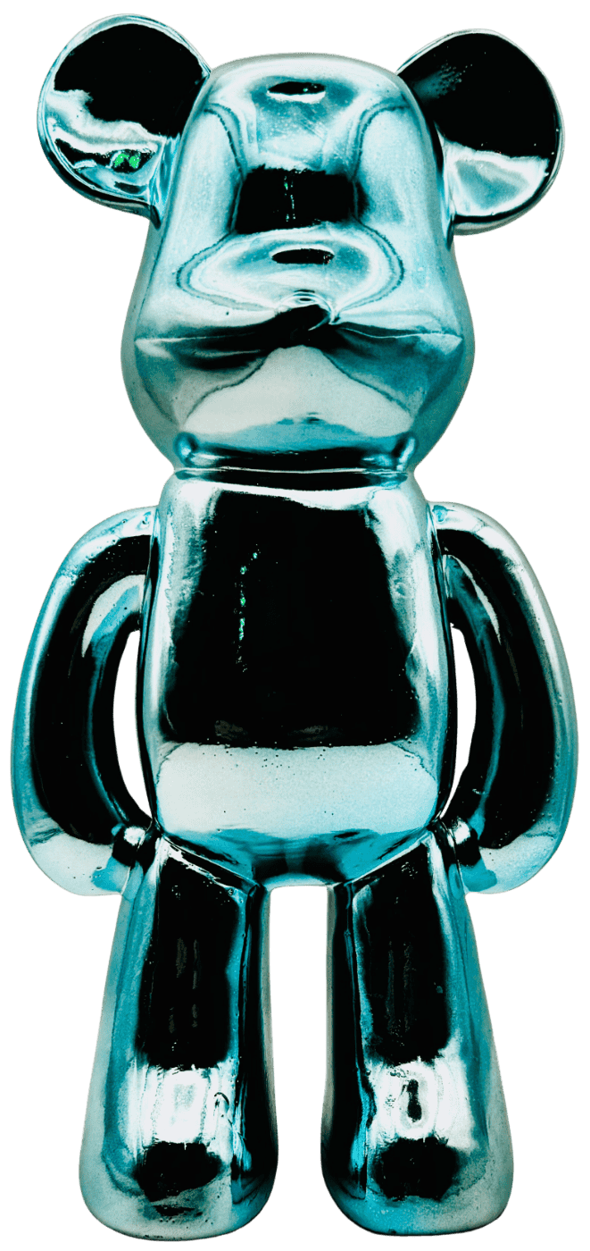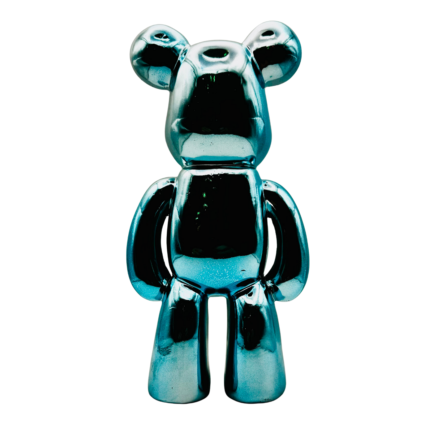 Orsetto a palloncino celeste in resina. Design pop e giocoso per decorare camere, librerie o studi creativi. Perfetto anche come regalo per chi ama l’arte contemporanea e il colore.