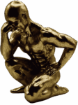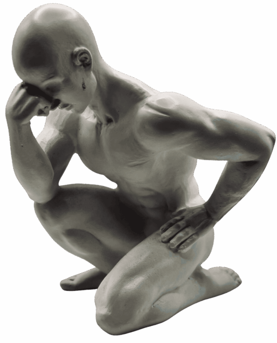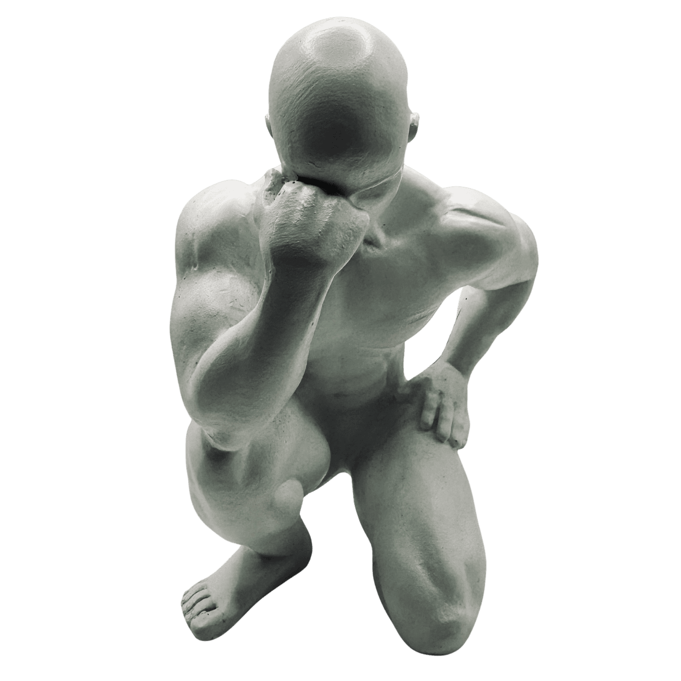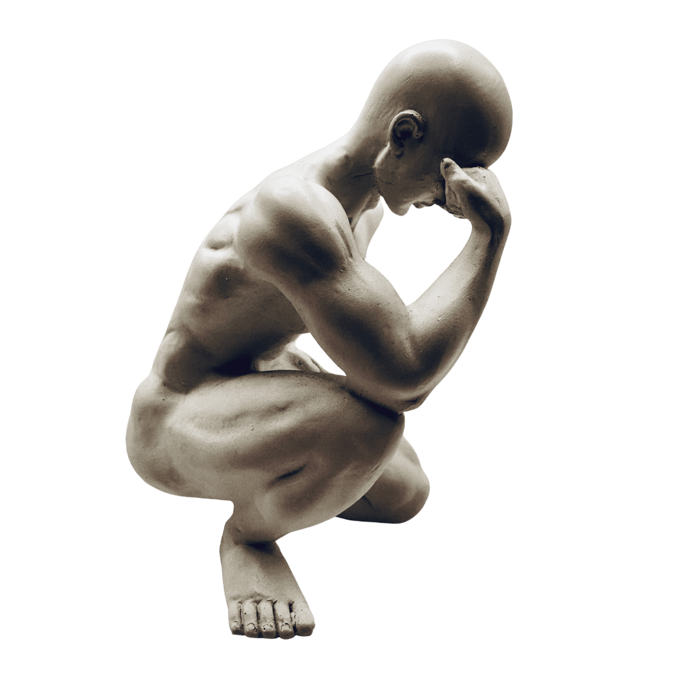Scultura decorativa in resina bianca ispirata al Pensatore. Un oggetto che coniuga spiritualità e design, perfetto per ambienti moderni o eclettici. Si adatta con eleganza a scrivanie, mensole o angoli lettura.