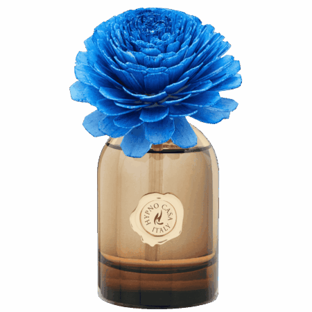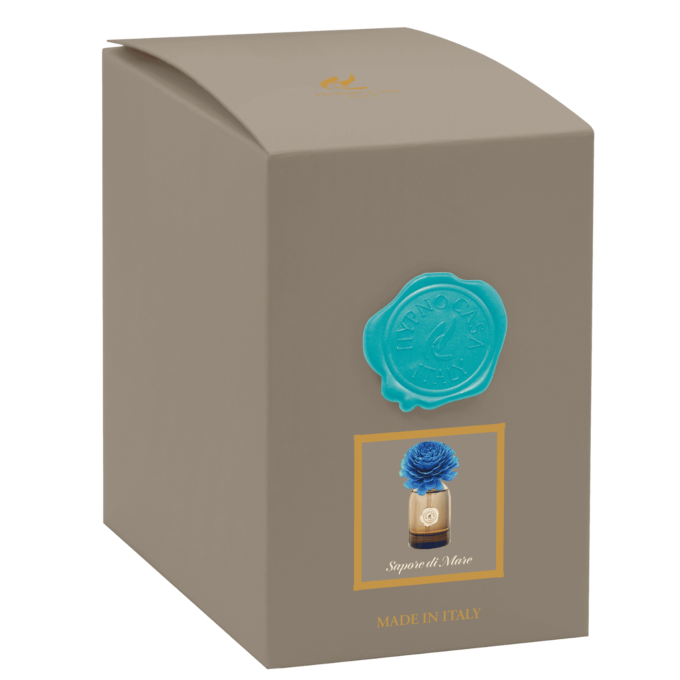 Diffusore con fiore decorativo da 50 ml – Colore blu. La fragranza Sapore di Mare evoca la brezza marina con un blend di agrumi, note saline, rosmarino, salvia sclarea e coriandolo su un fondo di legni e muschi. Freschezza e relax per ogni stanza.