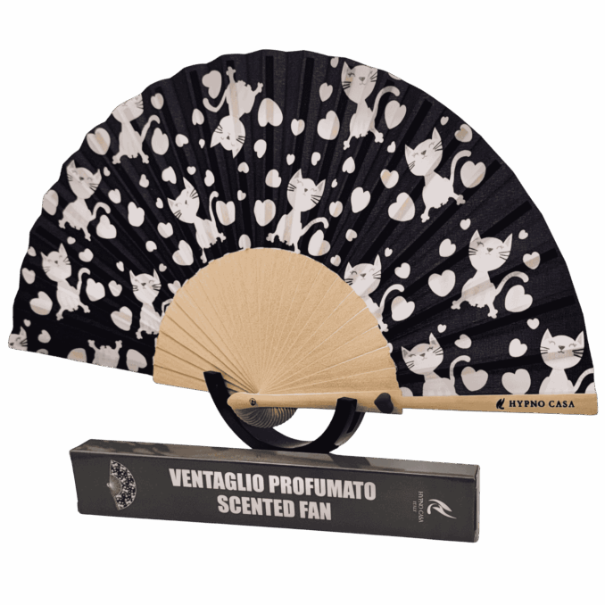 Ventaglio profumato “Cats” – Cuore di Bergamotto. Ironico, originale, irresistibile: il ventaglio “Cats” è dedicato a chi ama distinguersi con leggerezza. Il profumo Cuore di Bergamotto è una miscela affascinante di Bergamotto solare, Mela croccante e Ribes Nero. Le spezie – Ginepro e Pepe Nero – aggiungono carattere, mentre il fondo di Ambra e Legni preziosi con Betulla fumosa crea una scia elegante e moderna. Perfetto da regalare (o regalarsi).