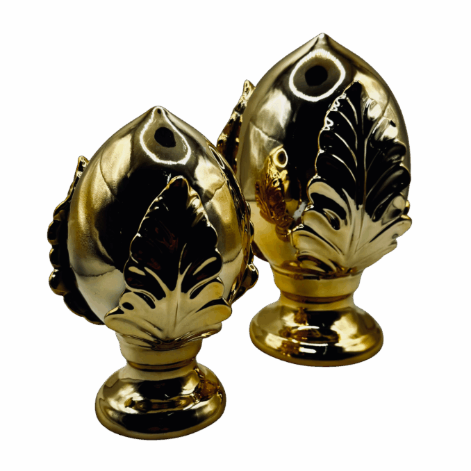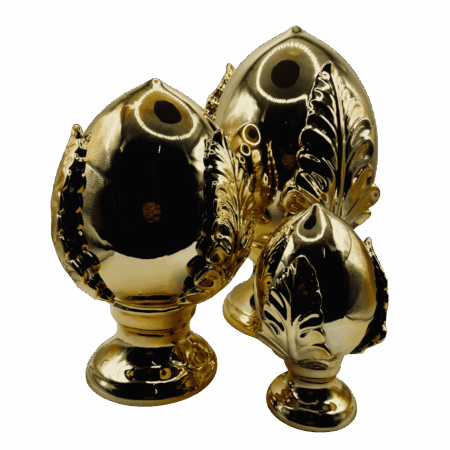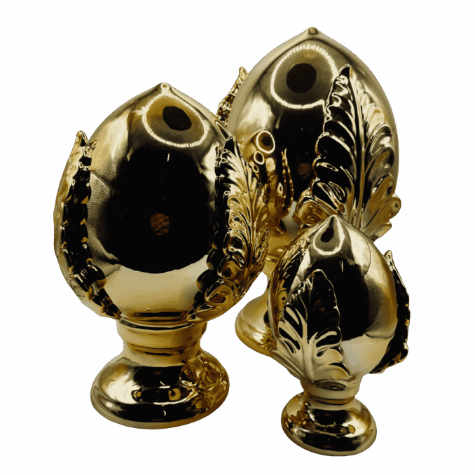 Pumo decorativo oro alto 18 centimetri in porcellana dipinta a mano. Elegante, simbolico e luminoso, questo oggetto d’arredo dona stile e classe agli ambienti contemporanei. Perfetto come centrotavola o decorazione prestigiosa.