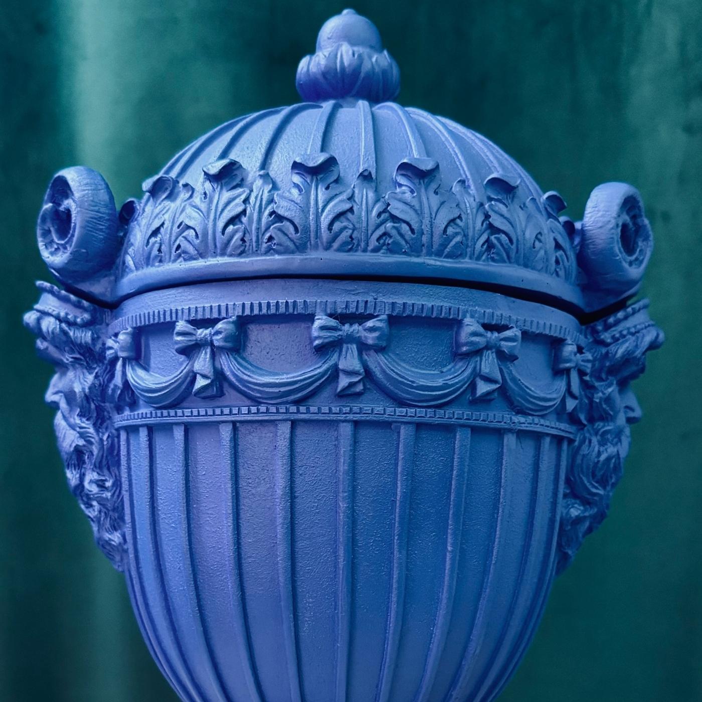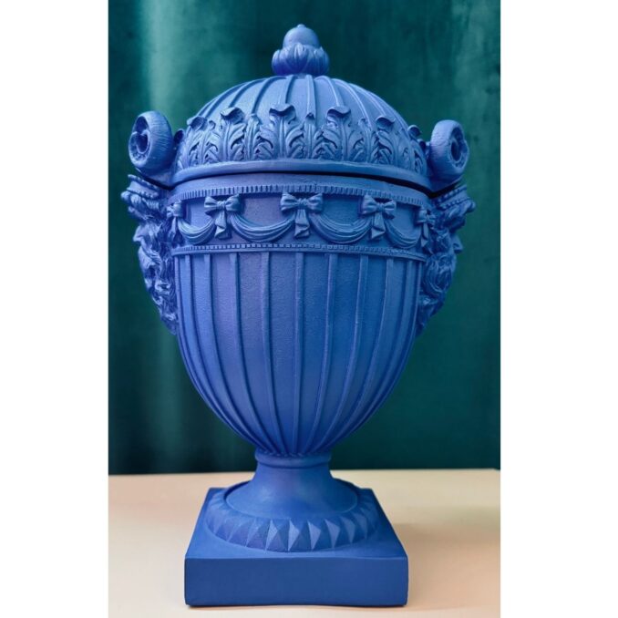 Potiche in resina color blu intenso, perfetta per completare l’arredo con un tocco neo pop. Da appoggiare su mensole, credenze o tavolini. Colore d’impatto per ambienti giovani.