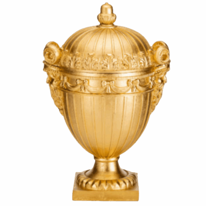 Potiche in resina stile neo pop oro, altezza 49 cm. Un oggetto d’arredo scenografico che unisce design moderno e gusto classico. Perfetta da sola o in coppia.