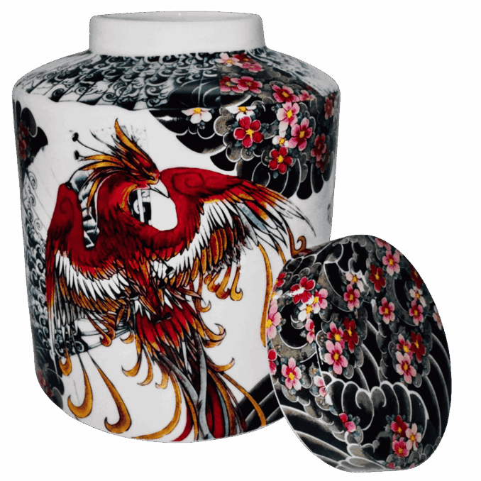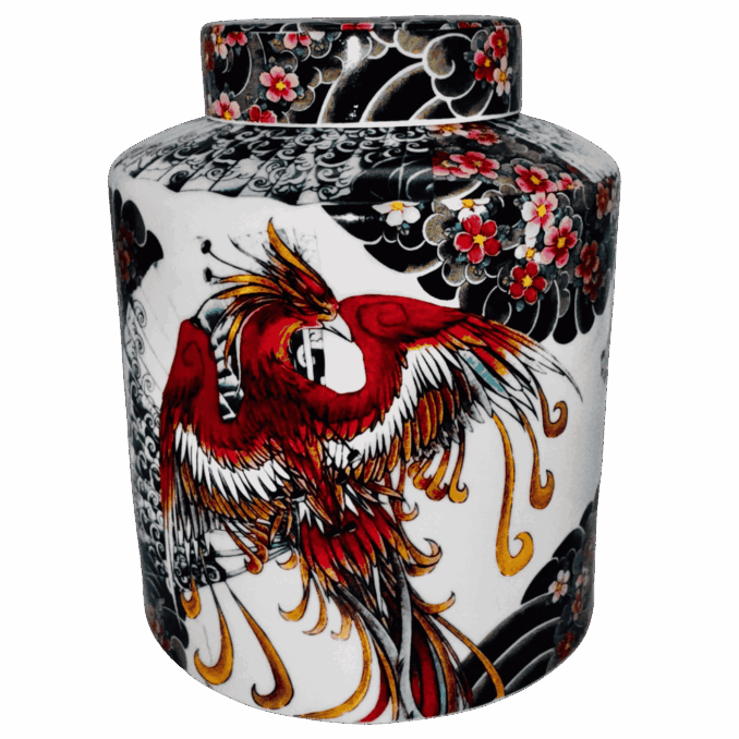 Diffusore Cilindrico “Tattoo Age” – Porcellana con Disegno Fenice (H 13 cm – Ø 13 cm)