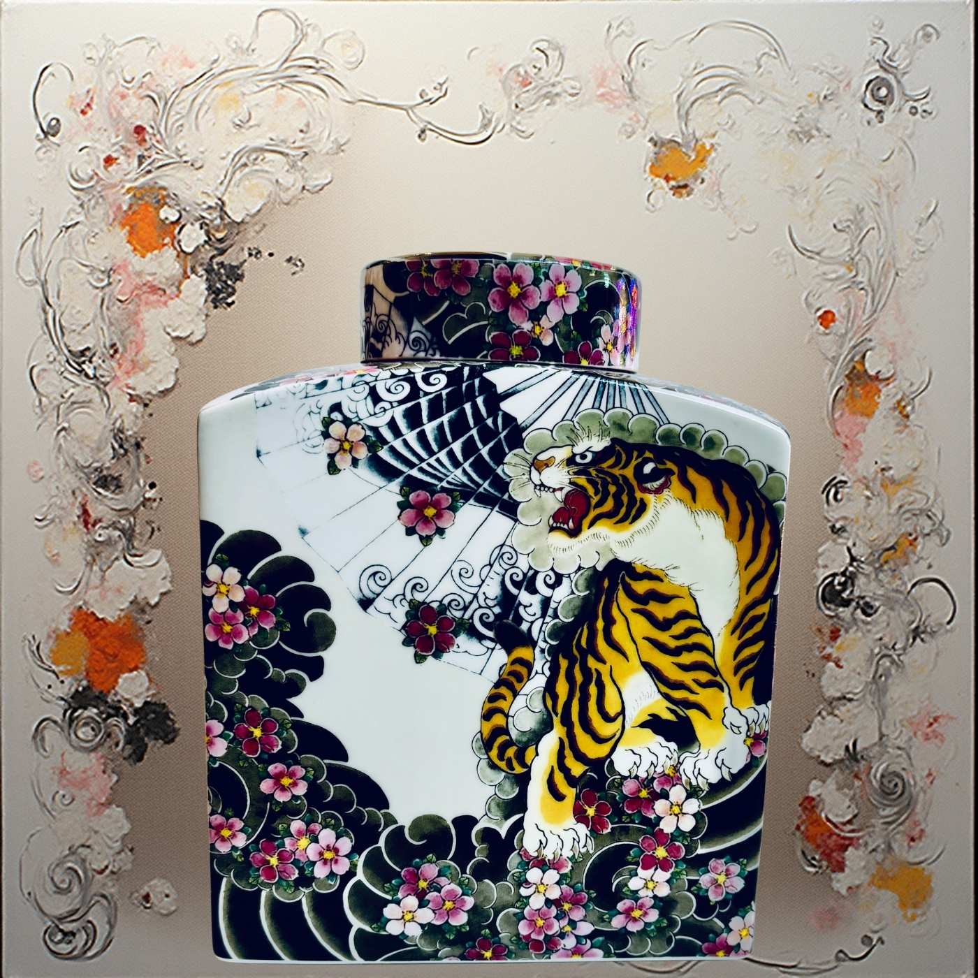 DIFFUSORE RETTANGOLARE GRANDE ‘Tattoo age’ in porcellana disegno tigre