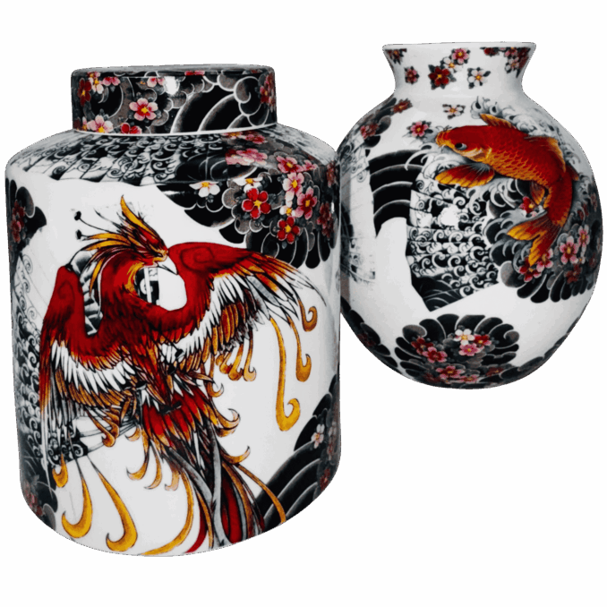 Questo diffusore tondo in porcellana unisce design contemporaneo e simbolismo tradizionale grazie al raffinato motivo “tattoo age” raffigurante carpe stilizzate. Le linee decise e l’estetica ispirata all’arte del tatuaggio donano al pezzo un carattere moderno e ricercato. Il contenitore, realizzato in porcellana liscia e di alta qualità, offre un aspetto elegante e una piacevole sensazione tattile. Perfetto come diffusore di fragranze per ambienti o come oggetto decorativo, aggiunge un tocco di stile distintivo a qualsiasi spazio della casa.(liquido a parte)
