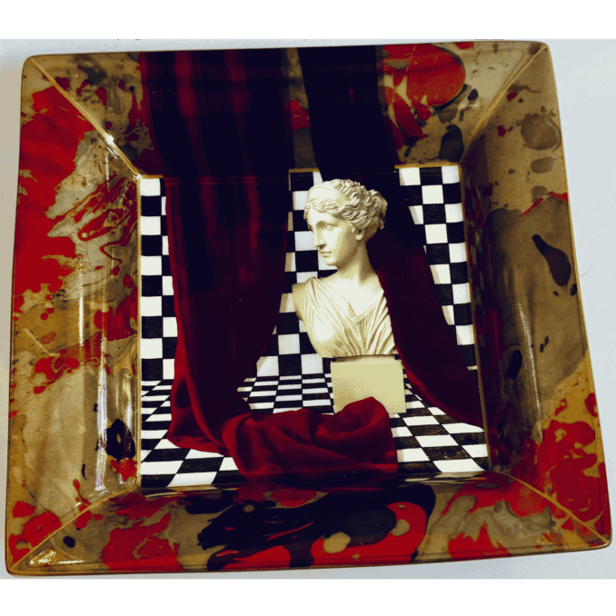 Svuotatasche quadrato in porcellana di alta qualità, formato 21×21 cm, caratterizzato da una vivace stampa multicolor che aggiunge personalità e stile a qualsiasi ambiente. Ideale come complemento d’arredo per ingresso, soggiorno o camera da letto, è perfetto per riporre chiavi, monete e piccoli oggetti quotidiani con eleganza.