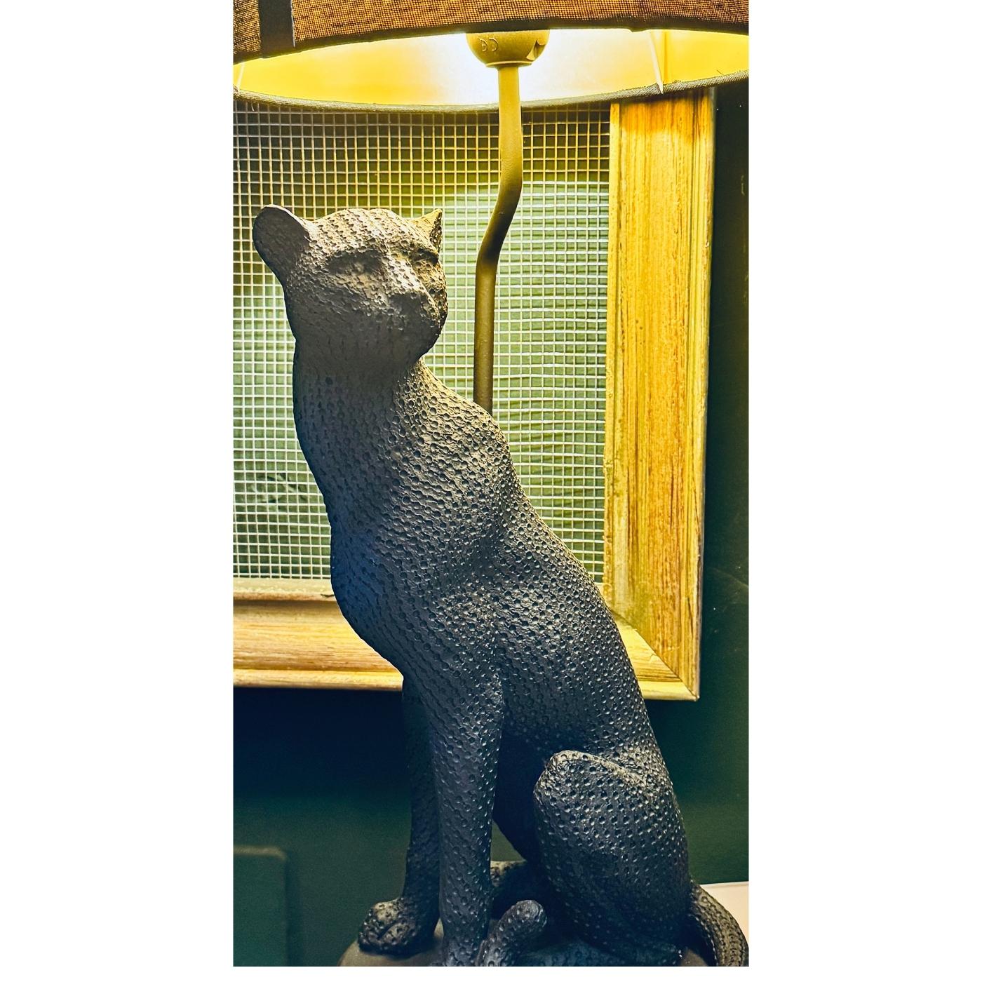 Lampada nera Bagheera in resina, con design moderno e fiero. Perfetta per interni bold e minimali, è un pezzo d’arredo deciso e stiloso, pensato per chi ama oggetti fuori dagli schemi.