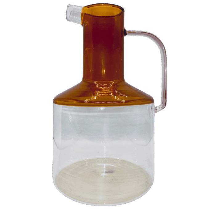 Raffinata caraffa in vetro borosilicato, caratterizzata da un elegante design tricolore che unisce tonalità ambra e un delicato manico rosa. La forma e la trasparenza del materiale la rendono un elemento distintivo per una tavola apparecchiata con gusto e raffinatezza. Perfetta per servire acqua, succhi o bevande rinfrescanti, unisce funzionalità ed estetica contemporanea per aggiungere un tocco di stile a ogni occasione.
