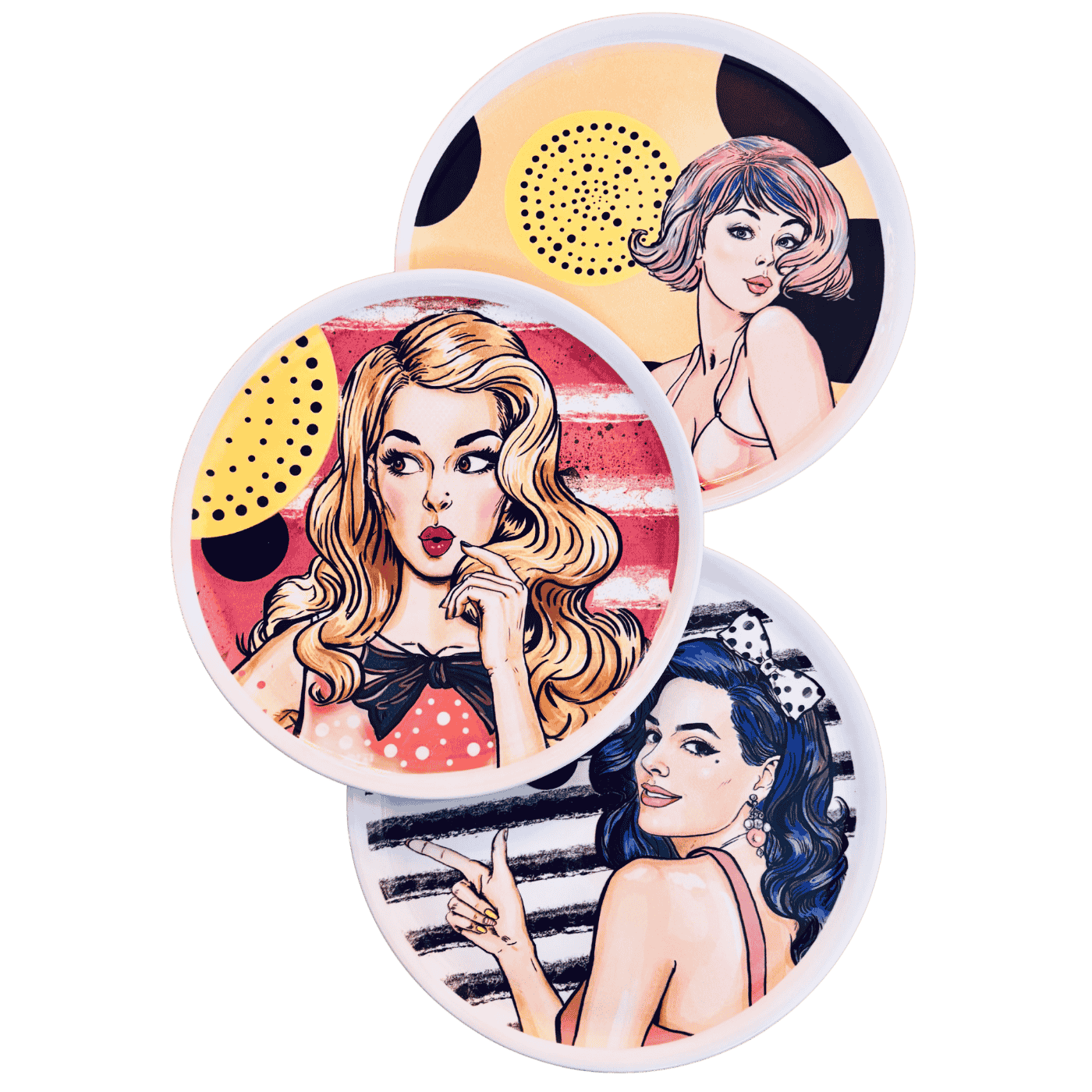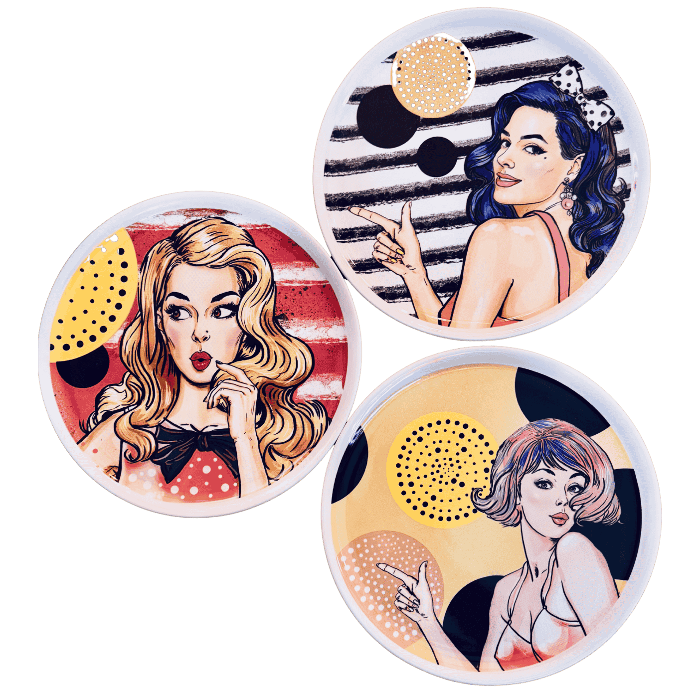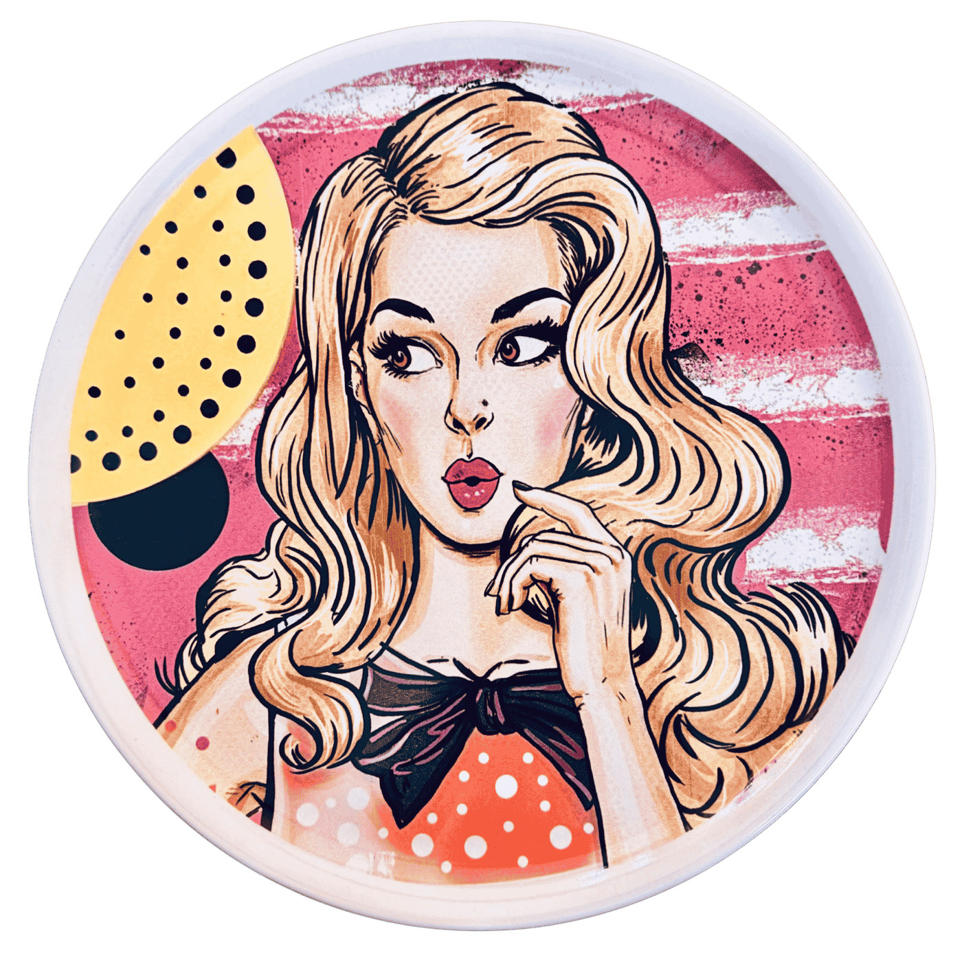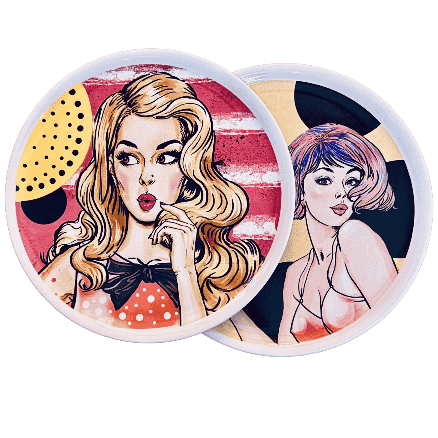 Originale e dal forte impatto visivo, questo piatto pizza in ceramica è pensato per chi ama uno stile vintage e fuori dagli schemi. La decorazione con ragazze pin-up richiama l’estetica retrò degli anni ’50, rendendo ogni tavola più vivace e caratteristica.