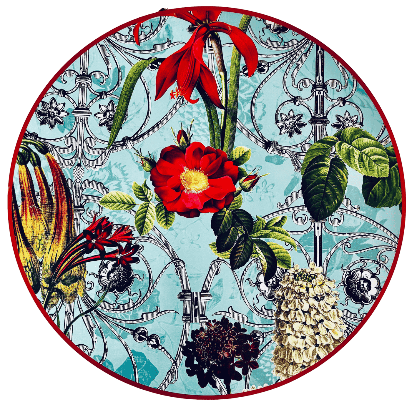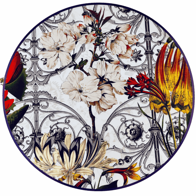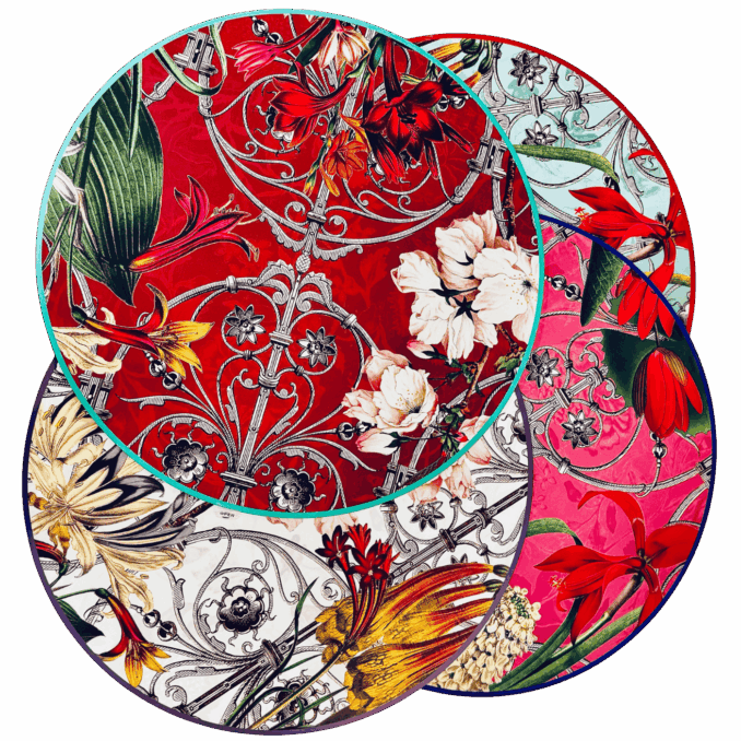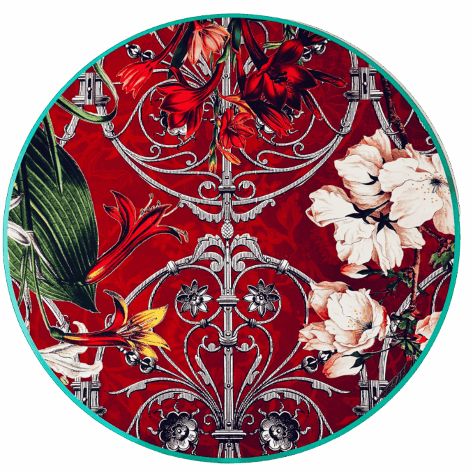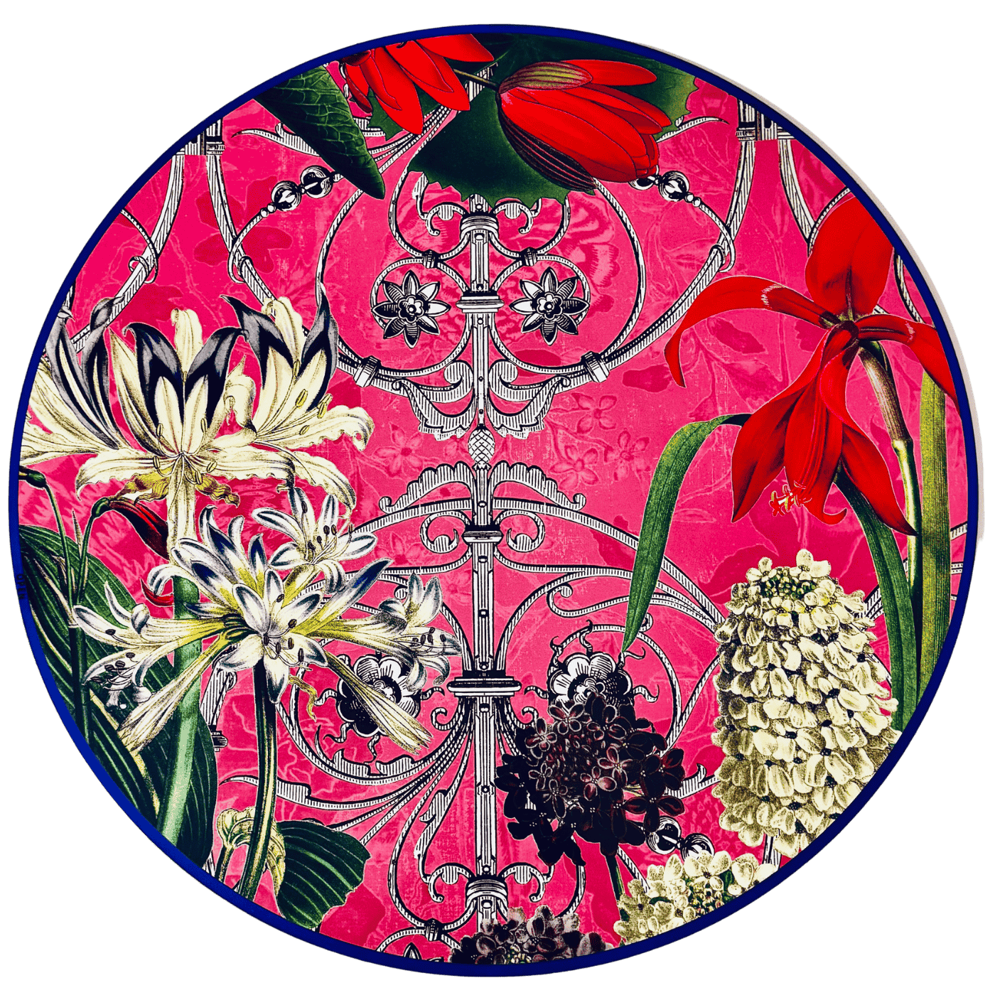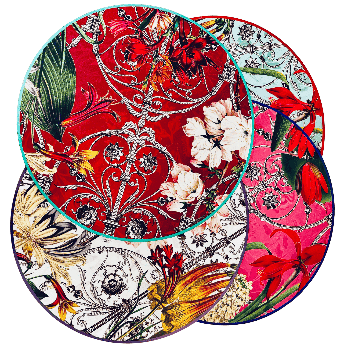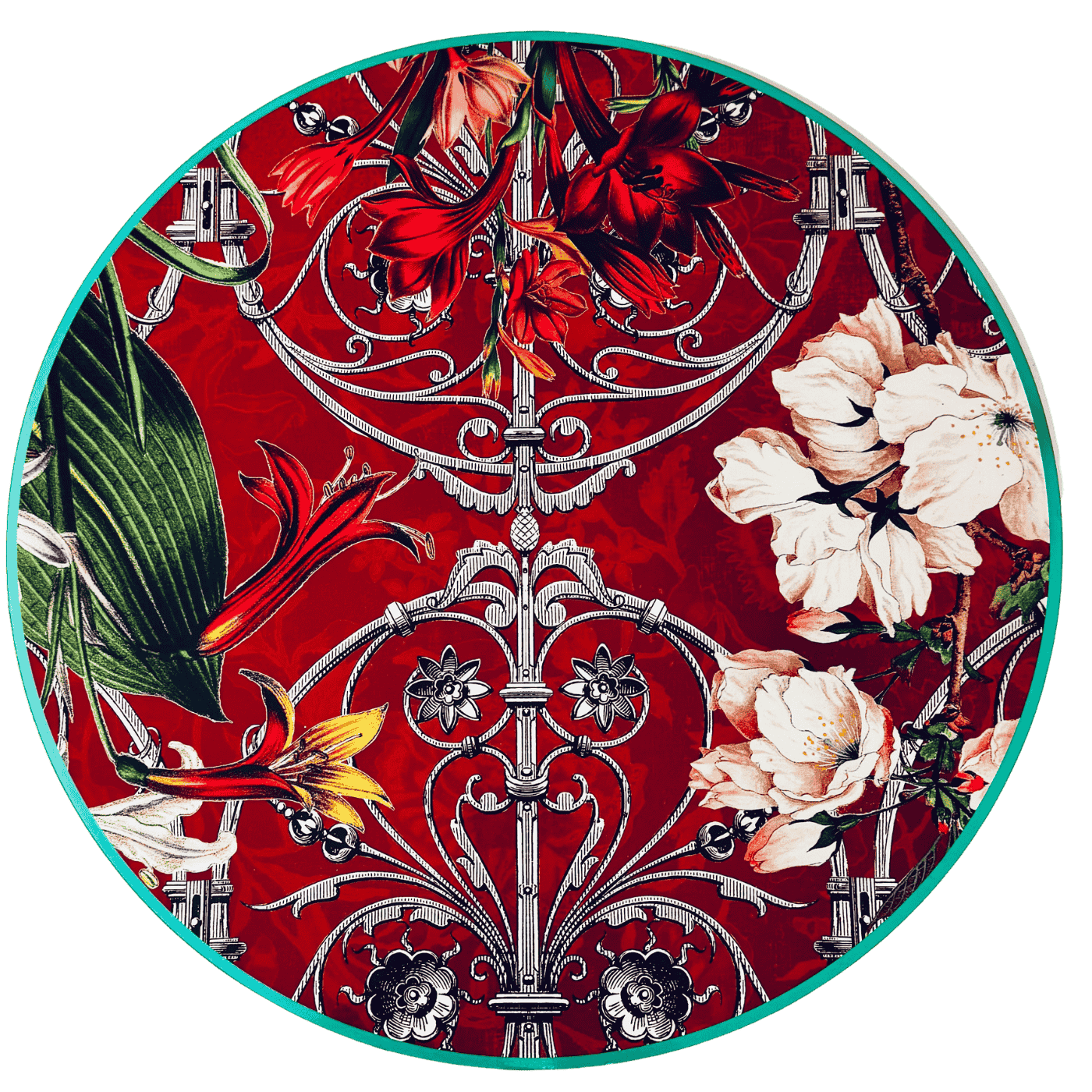 Il set “Royal Placemat” unisce stile e funzionalità. Ogni sottopiatto rotondo Ø39 cm è realizzato in plexiglass lucido con decorazioni floreali ad alta definizione, fissato su una base in sughero naturale che protegge il tavolo da graffi e calore. Il plexiglass regala una superficie brillante, facile da pulire, mentre il sughero conferisce stabilità e un tocco naturale. Perfetto per mise en place eleganti, cene formali o occasioni speciali.