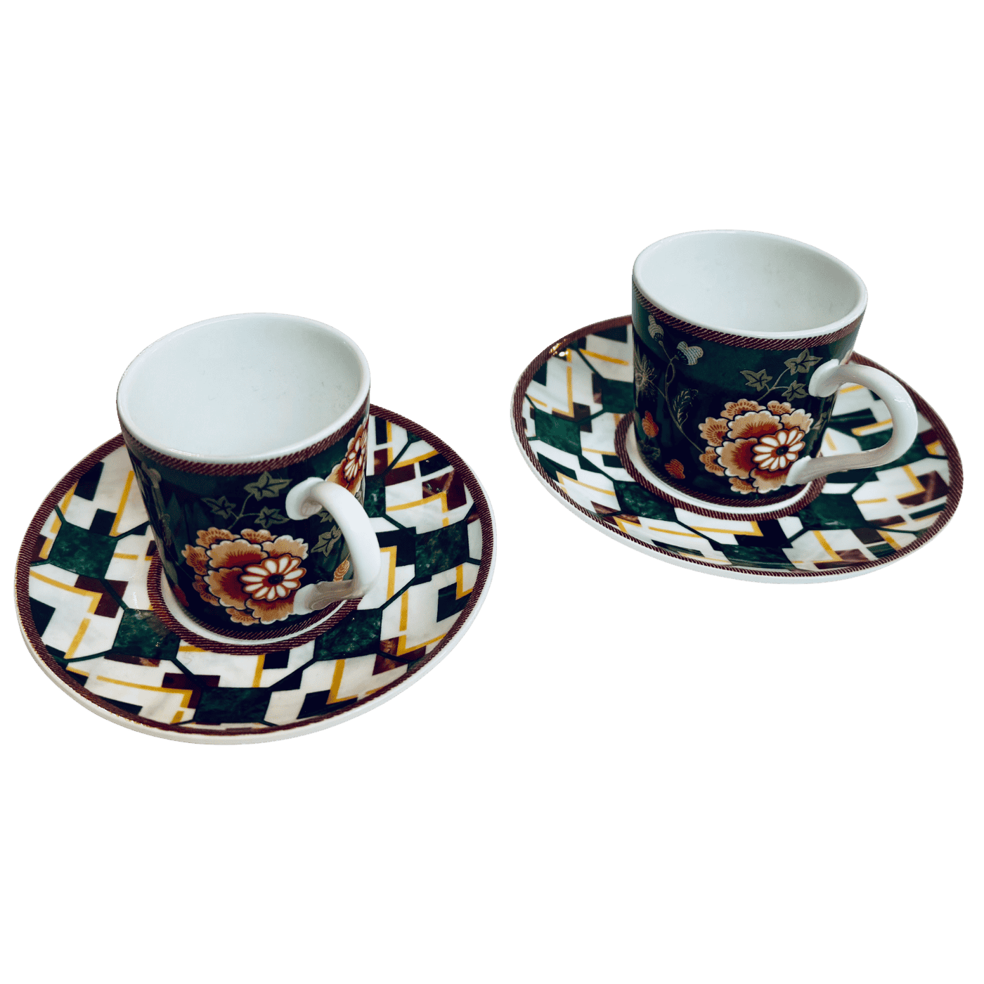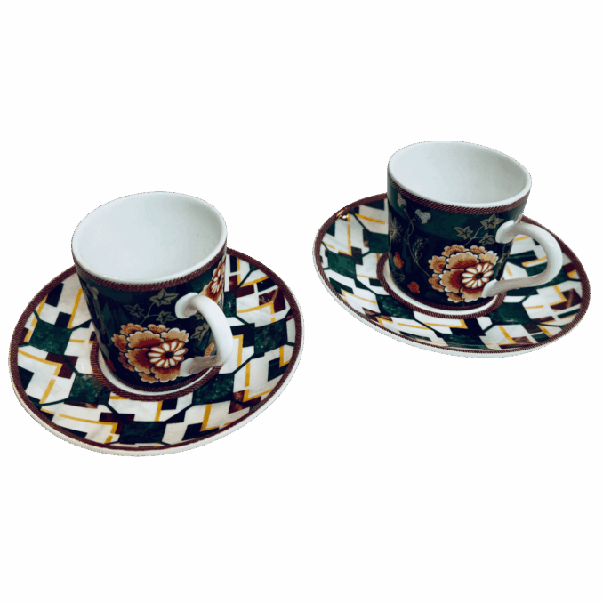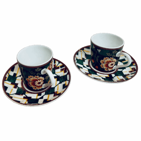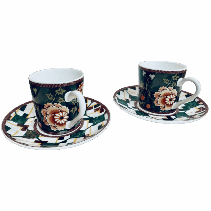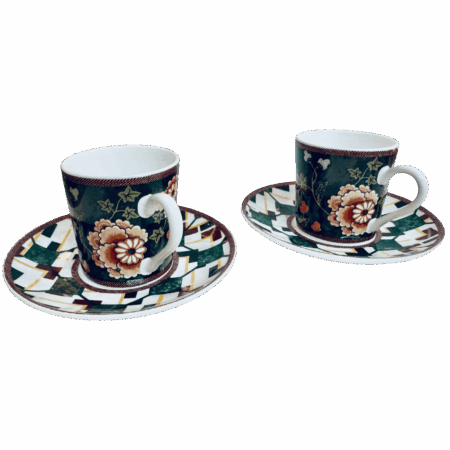 Elegante coppia di tazze da caffè in fine porcellana, caratterizzate da un raffinato decoro tropicale. Il fondo nero mette in risalto i dettagli colorati dei fiori esotici e la figura di un pappagallo bianco, creando un effetto vivace e contemporaneo. Perfette per impreziosire la pausa caffè con un tocco di stile e originalità, sono ideali sia per l’uso quotidiano sia come idea regalo.