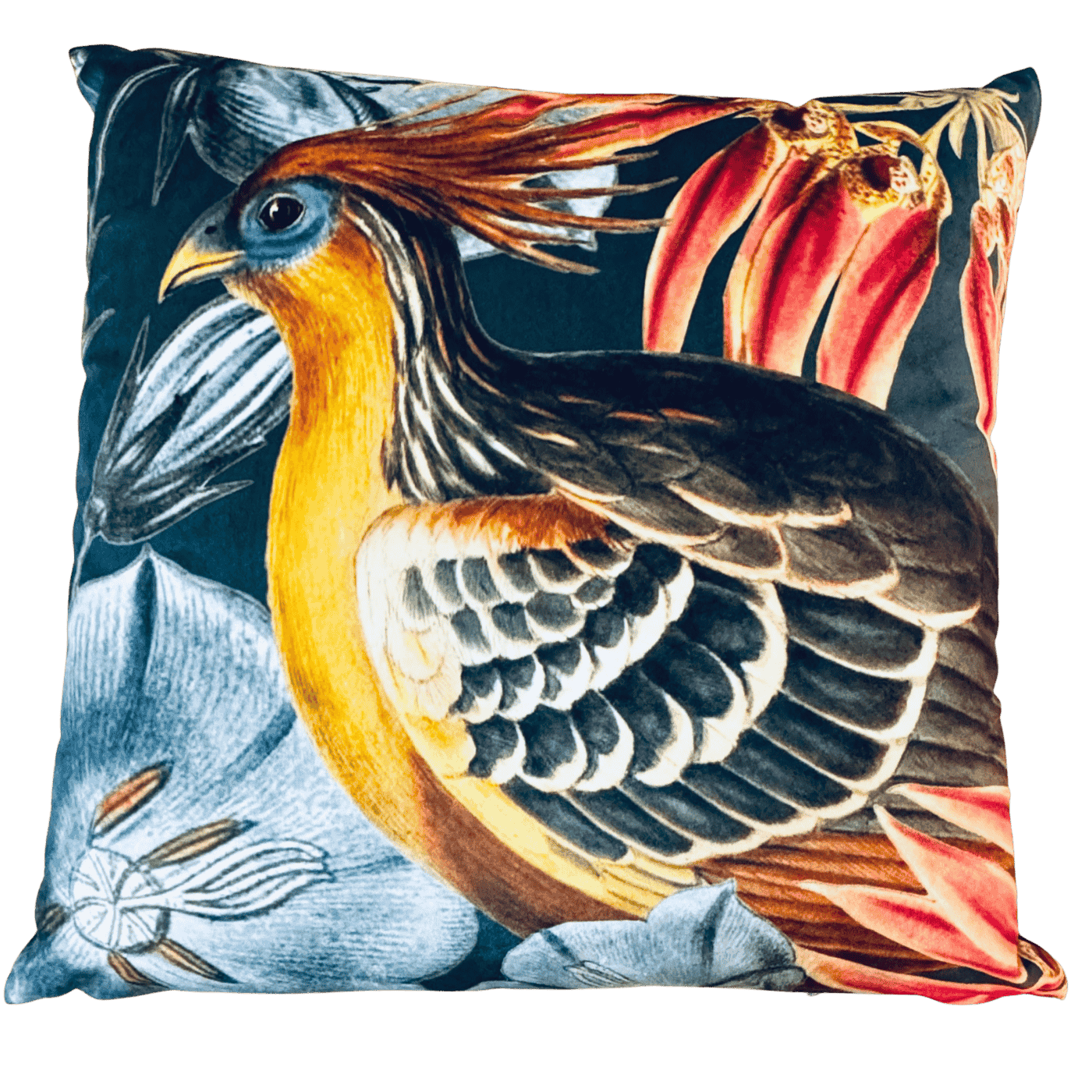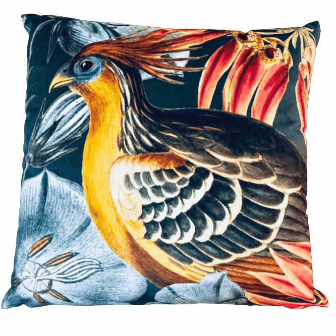 Cuscino in velluto 50×50 “Deep Lagoon” con stampa uccello in stile vintage. Texture soffice e imbottitura inclusa. Dona eleganza naturale a divani, letti o poltrone. Perfetto per un home decor sofisticato e accogliente.